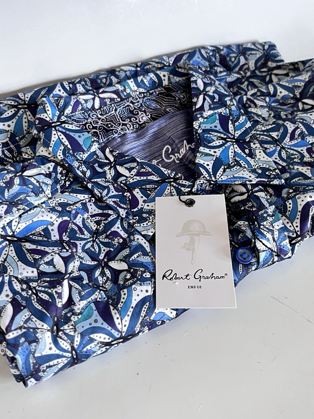 как выглядит Robert Graham Shirt Mens XL Blue Abstracted Floral With Flip Cuff NWT фото