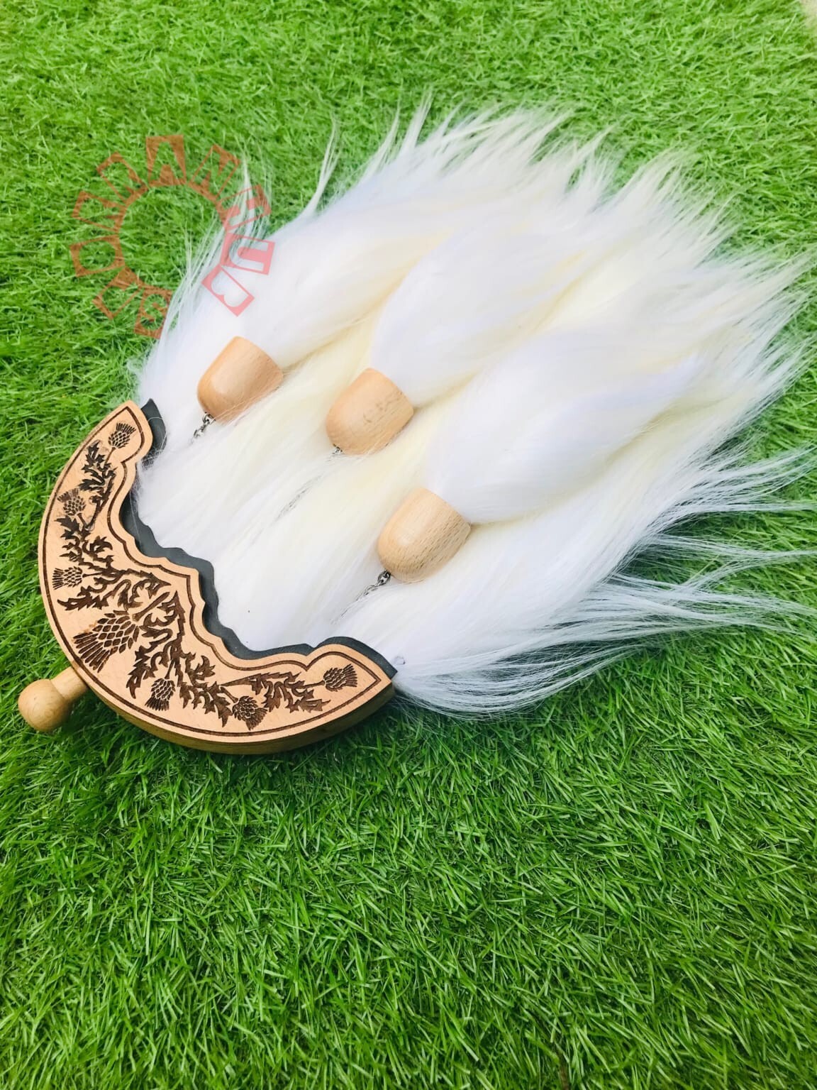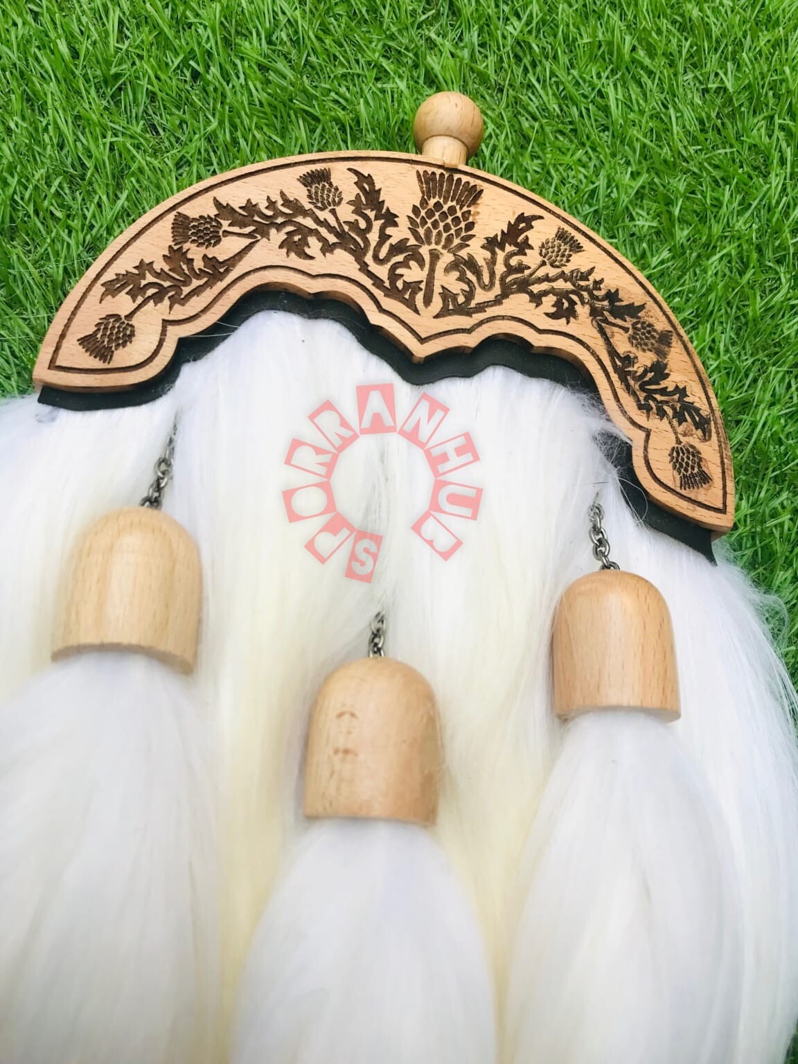 Scottish Handmade White Goat Long Hair Dress KIlt Sporran Wooden Thistle Cantle