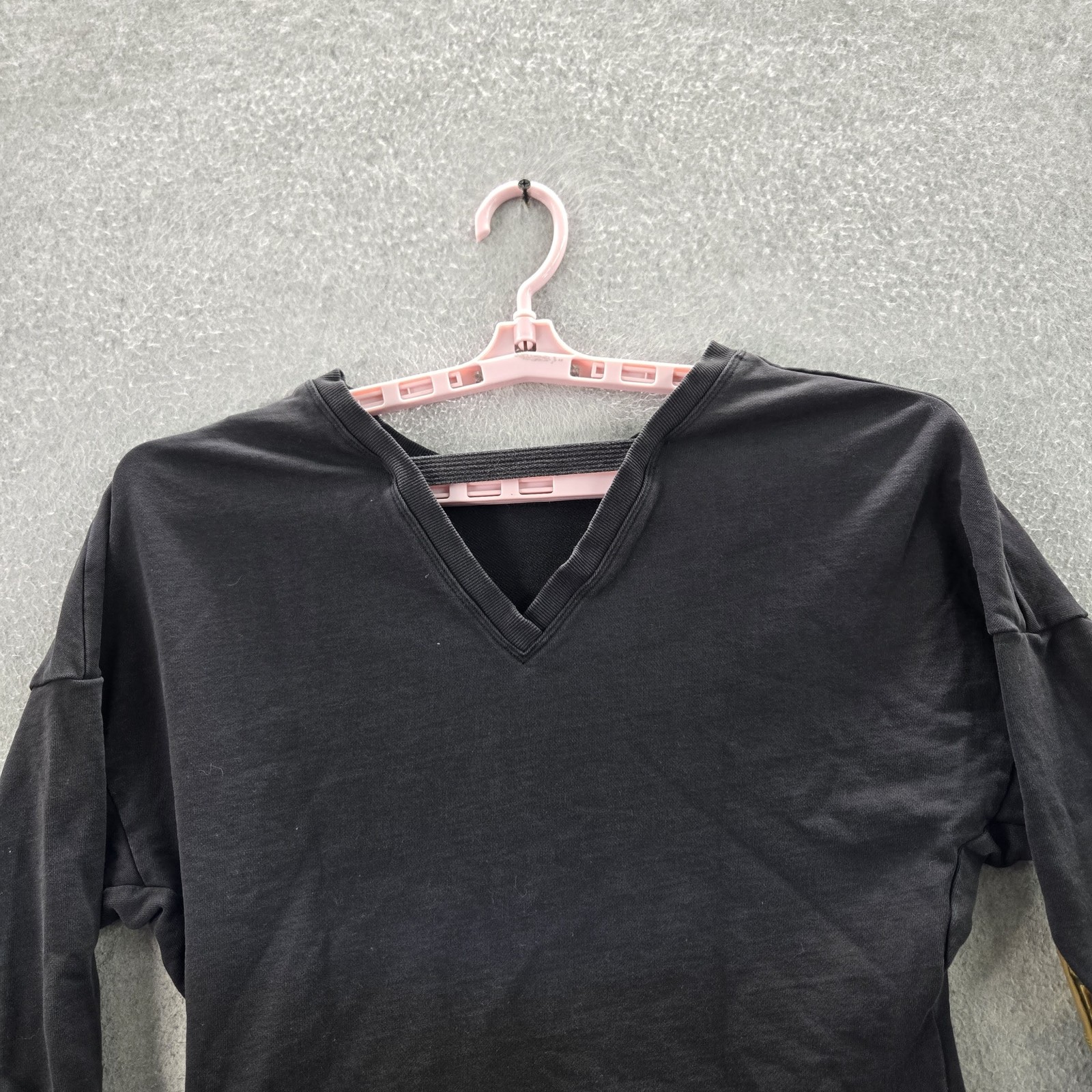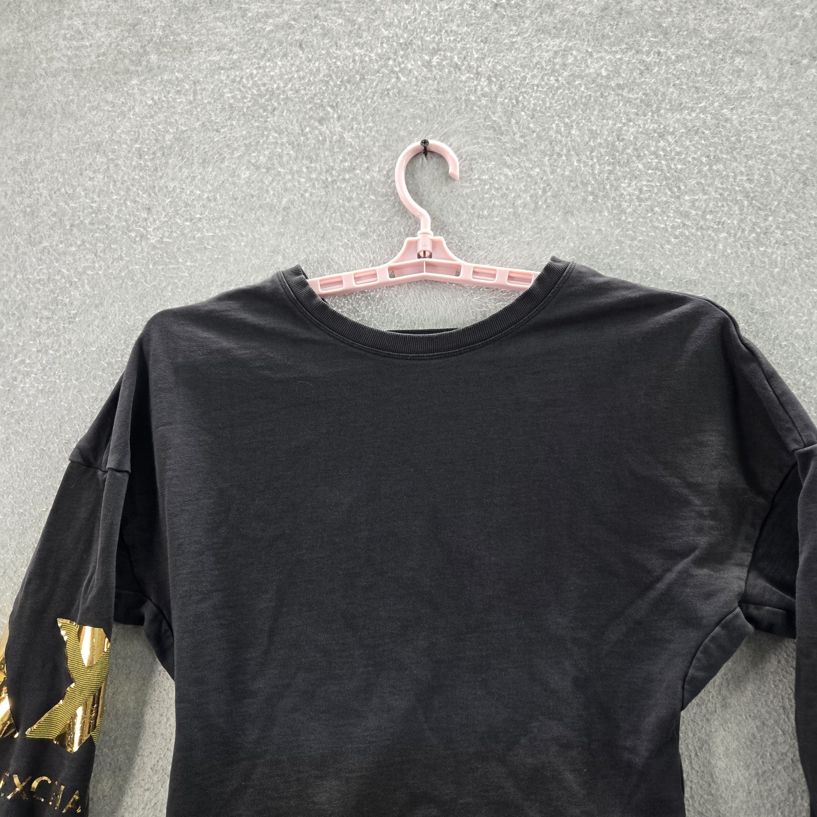 Armani Exchange Women Sweatshirt S Black Logo Print Metallic Long Sleeve