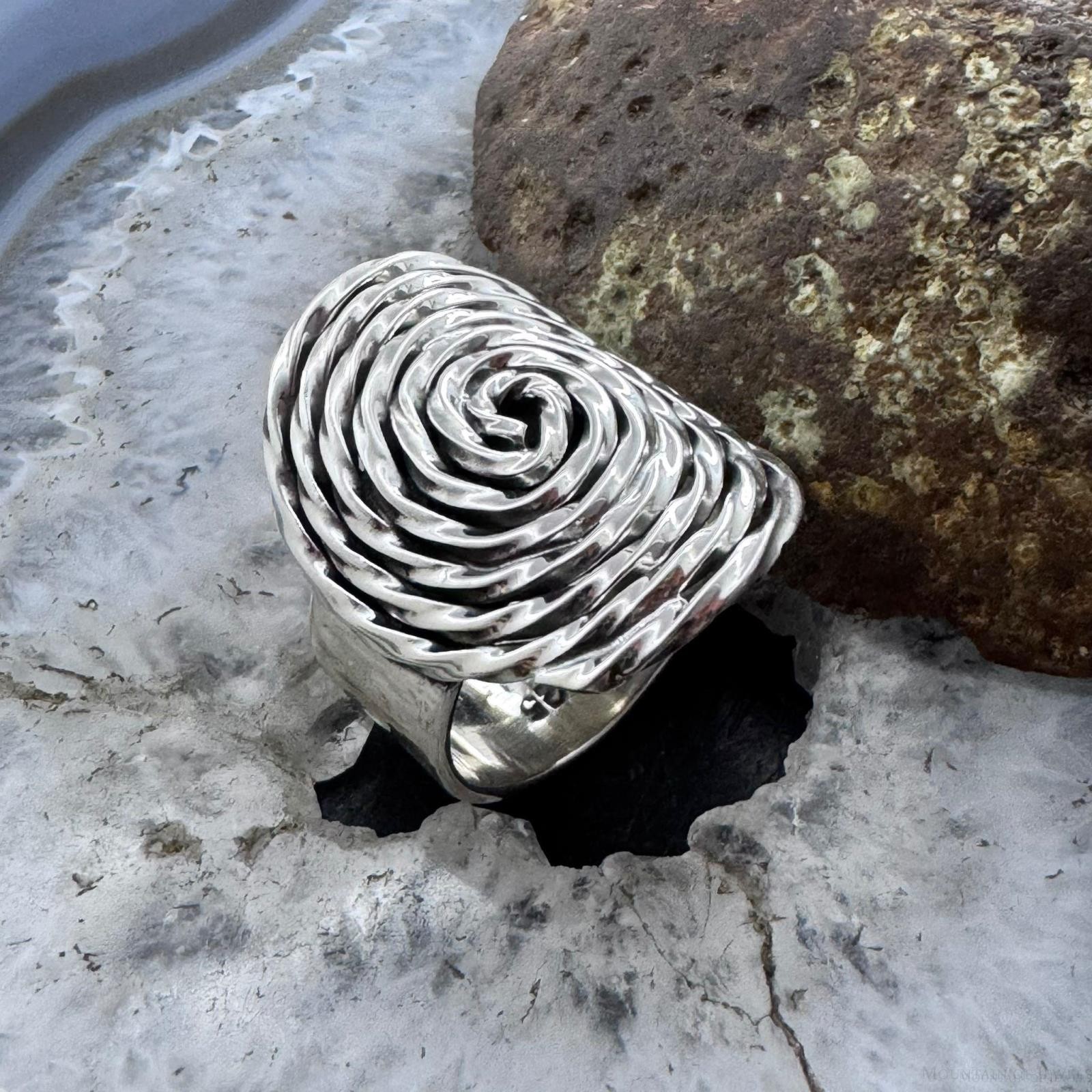 как выглядит Sterling Silver Elliptic Swirly Rope Pattern Fashion Ring For Women,Taxco Mexico фото
