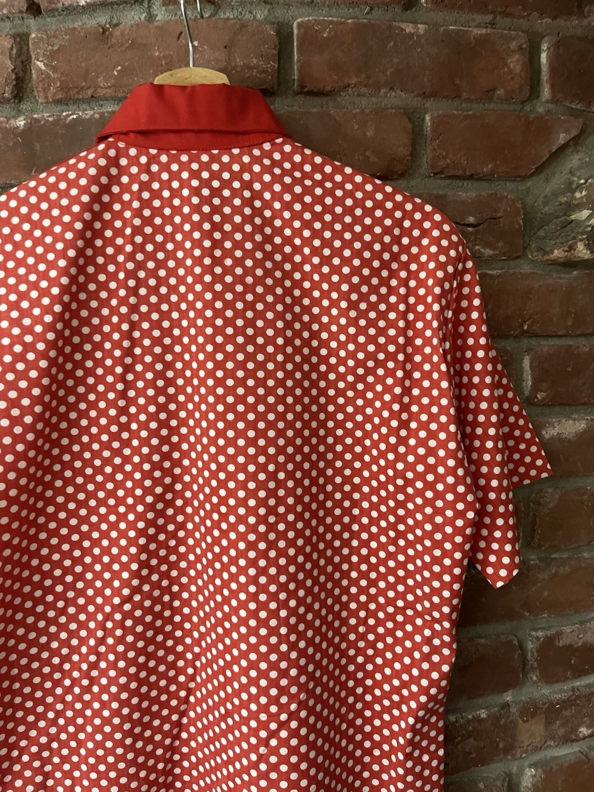 Vintage 70s 80s Angelica Work Wear Button Up Polka Dot Print Shirt Size M/L