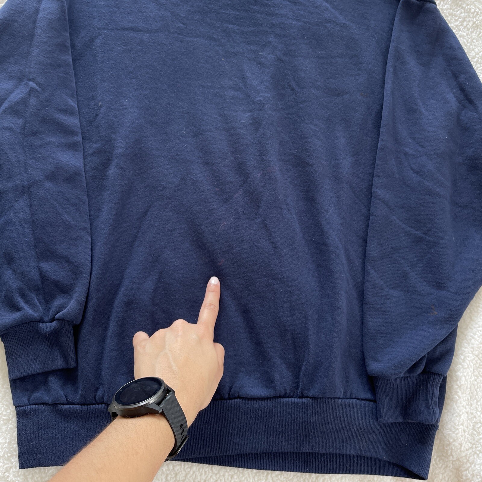 как выглядит Vintage 90s Jerzees Blank Crewneck Sweatshirt Men Sz L Blue Navy Made in USA фото