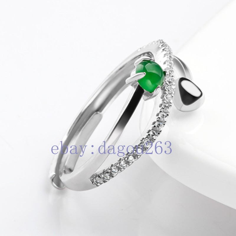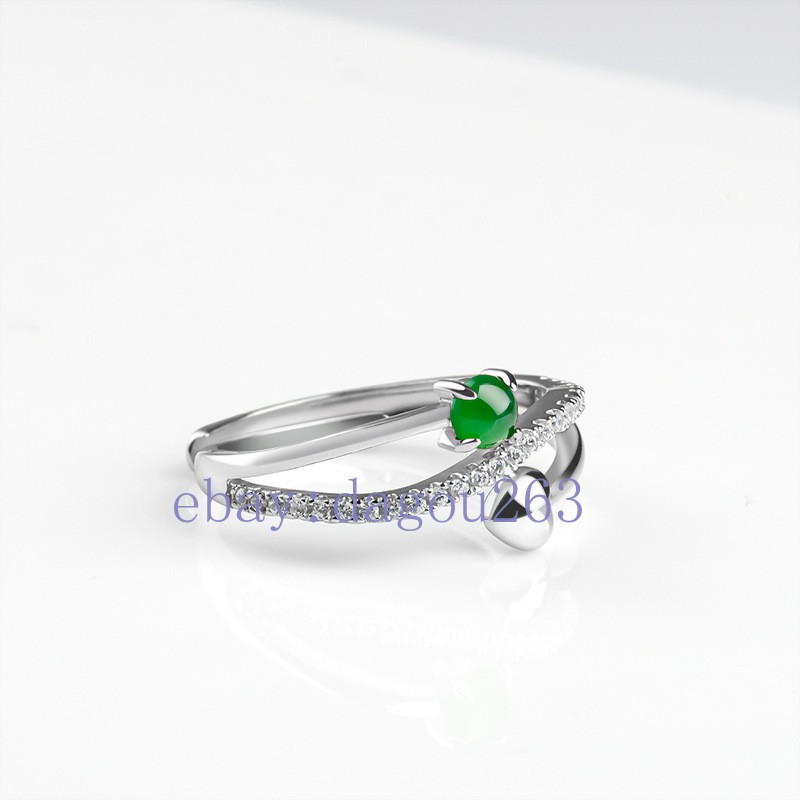 Certified natural A-grade jadeite ice Green 925 Silver Inlaid Fashion Ring