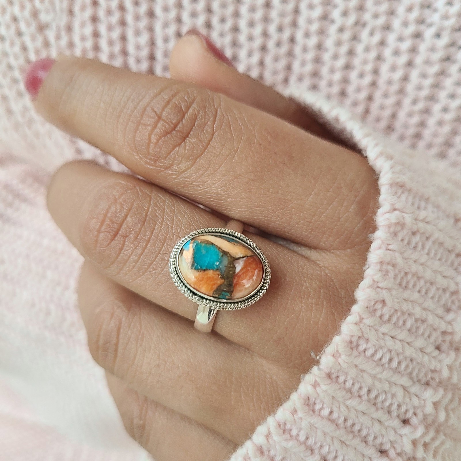 Spiny Oyster Turquoise Ring 925 Sterling Silver Ring Orange Turquoise Ring USA