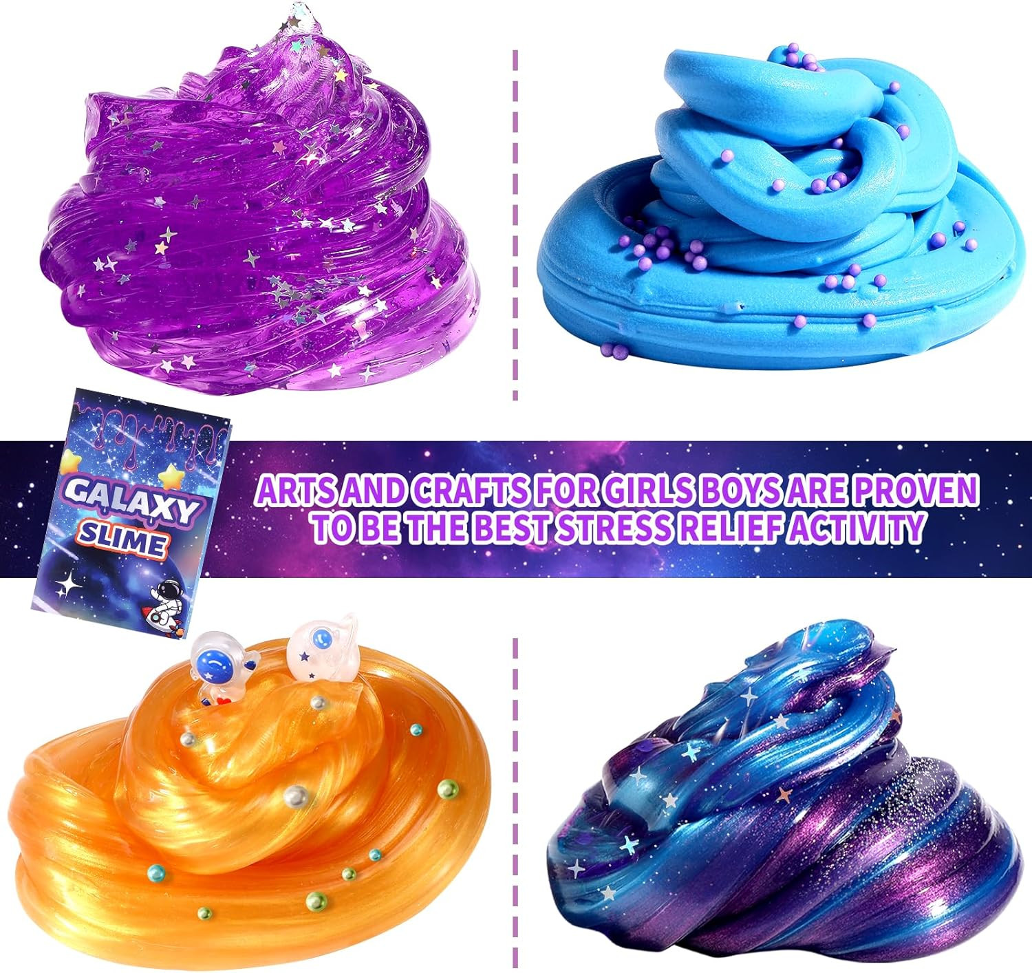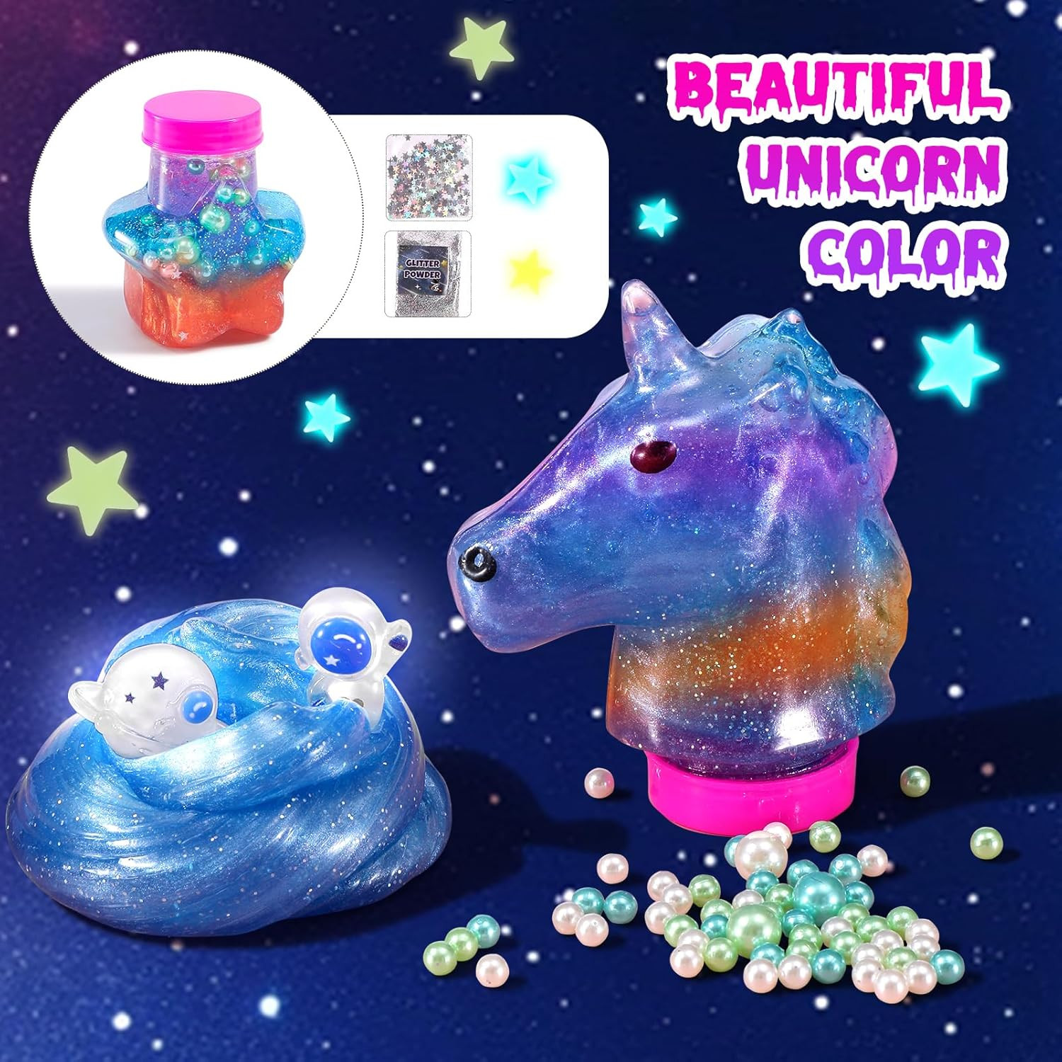 как выглядит Mini Galaxy Slime Kit, with Glow in the Dark Stickers,Making Butter Slime, Dark фото