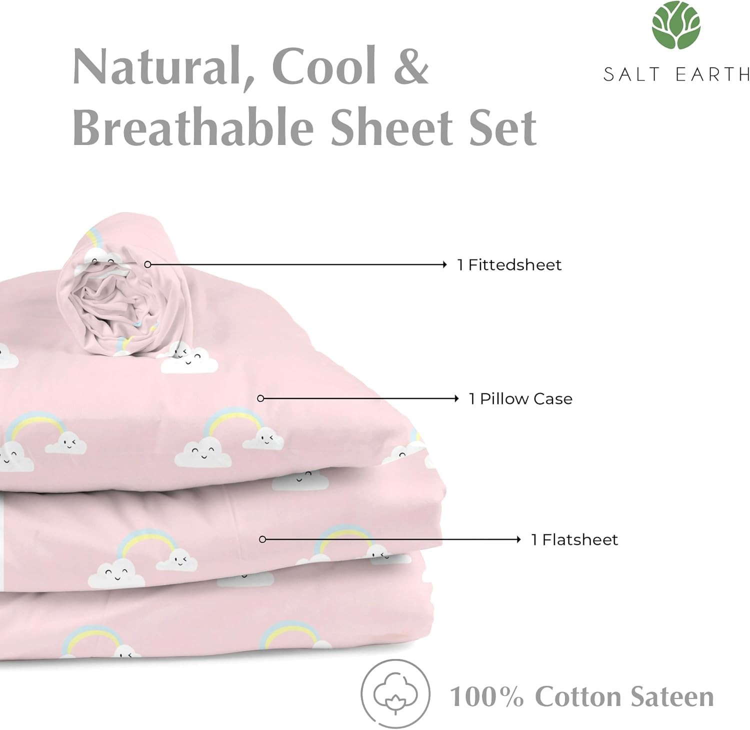 100 Cotton Children's Sheet, Twin Sheet Set for Toddler Bed Rainbow Colors