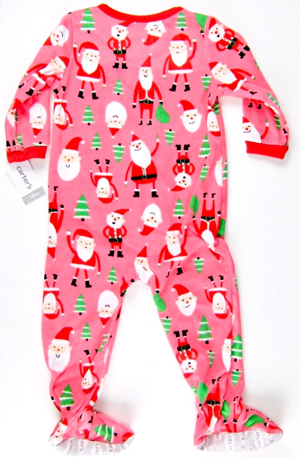 как выглядит Footed Sleeper Pajamas Girls Size 4 Pink Fleece Santa Full Zip Carters Christmas фото