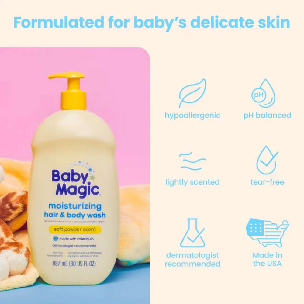 Baby Magic Tear-Free Gentle Hair and Body Wash for Infants, Soft Powder Scent