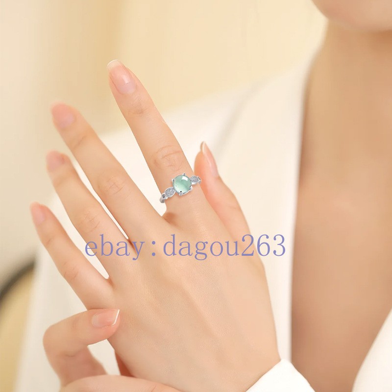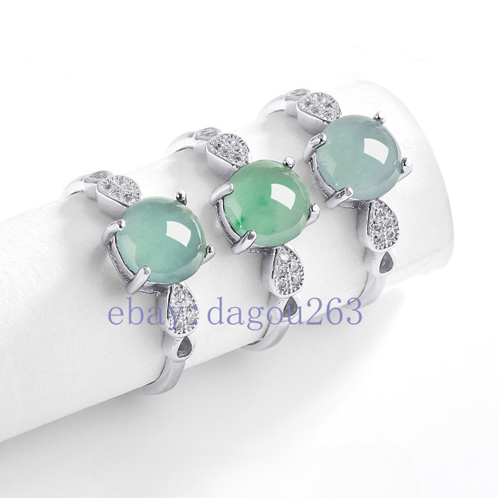 Certified natural A-grade jadeite Blue water egg 925 silver inlaid Ring