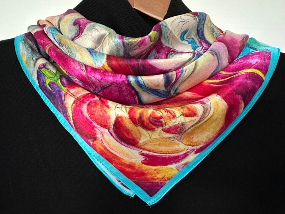 как выглядит 26"x26"Colorful Flowers Print Pure Mulberry Satin Silk12momme Scarf 65x65cm 4-33 фото