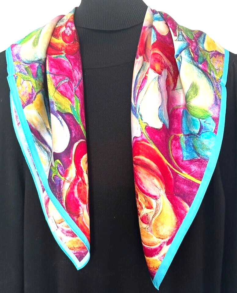 26x26Colorful Flowers Print Pure Mulberry Satin Silk12momme Scarf 65x65cm 4-33