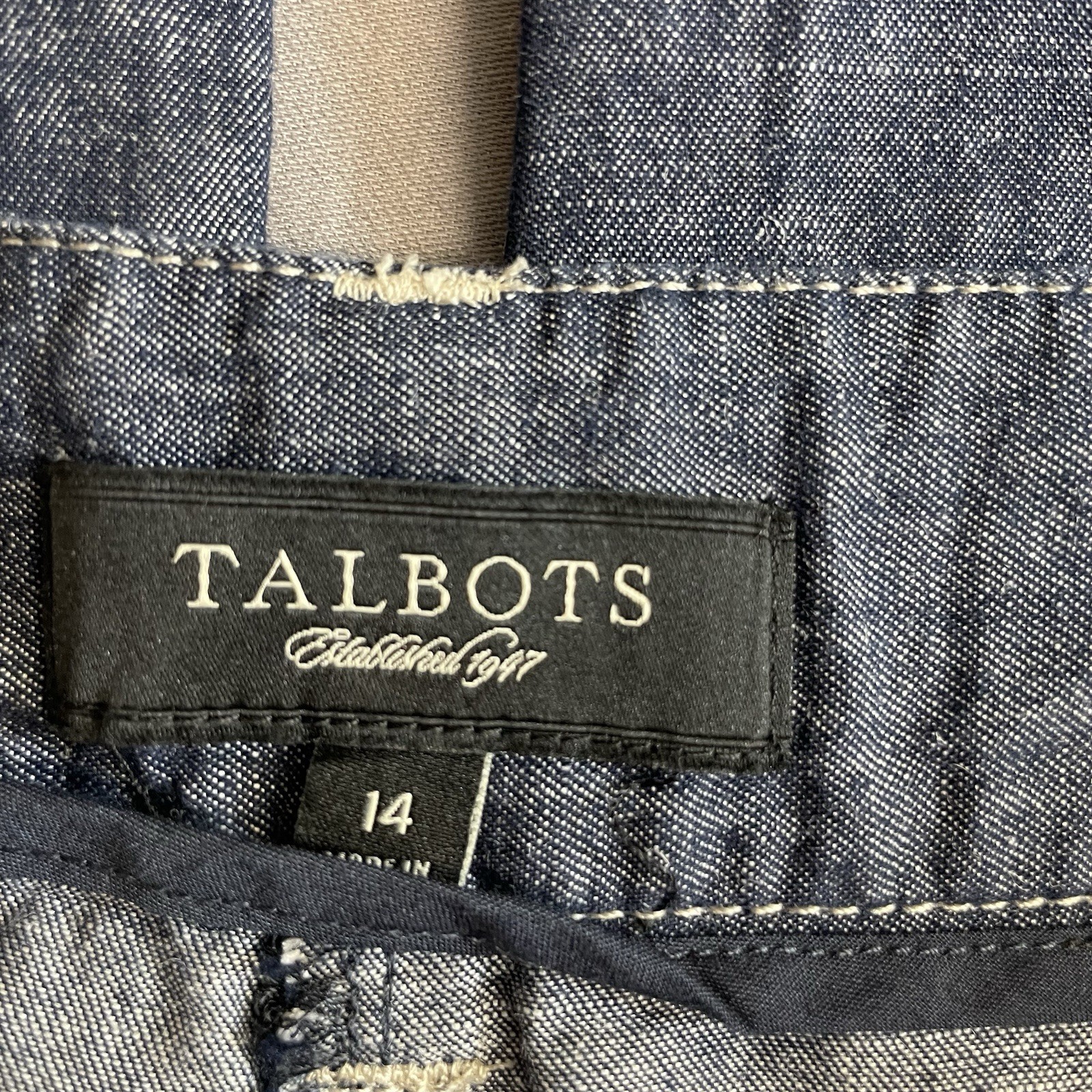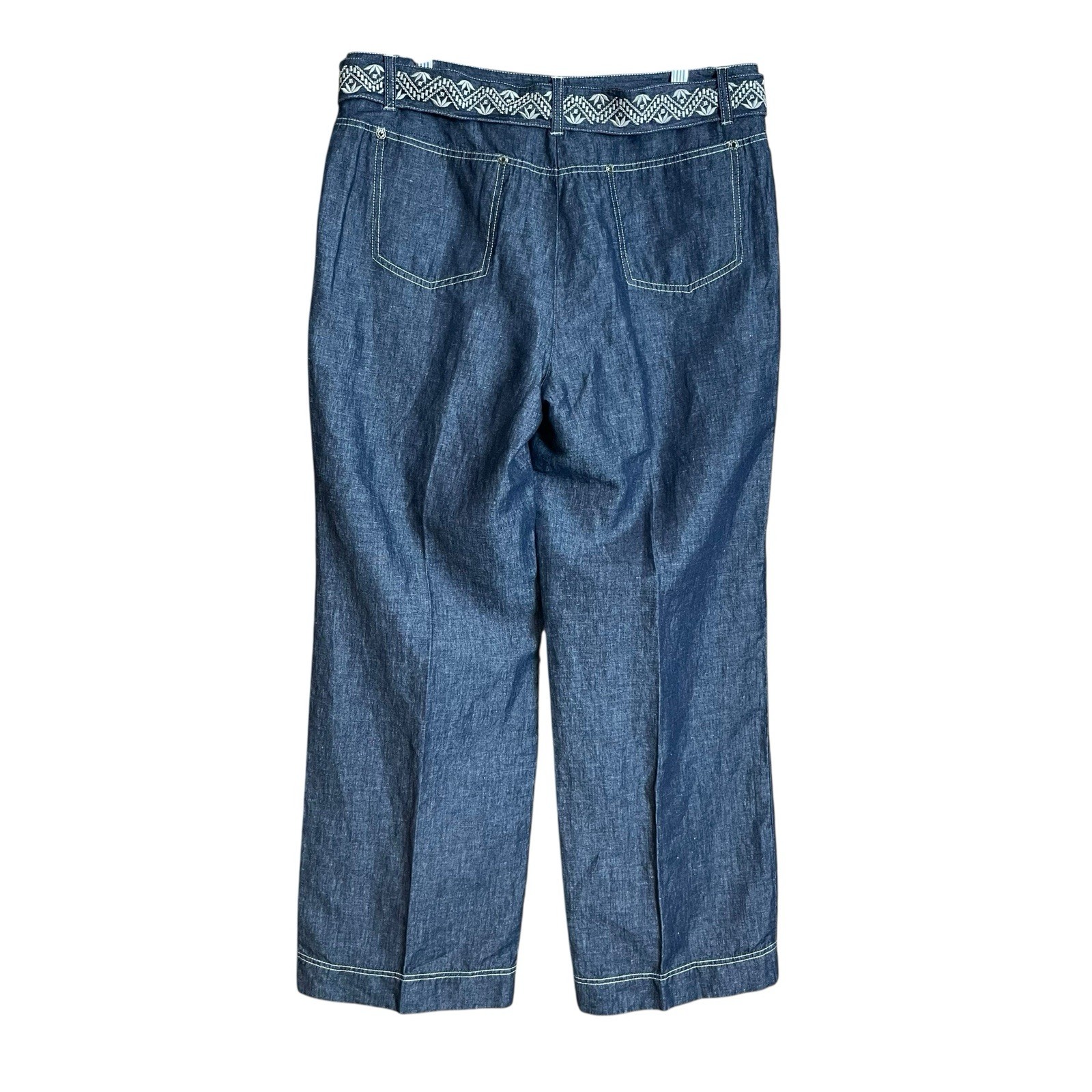 Talbots linen cotton blend wide leg blue pants with embroidered belt 14