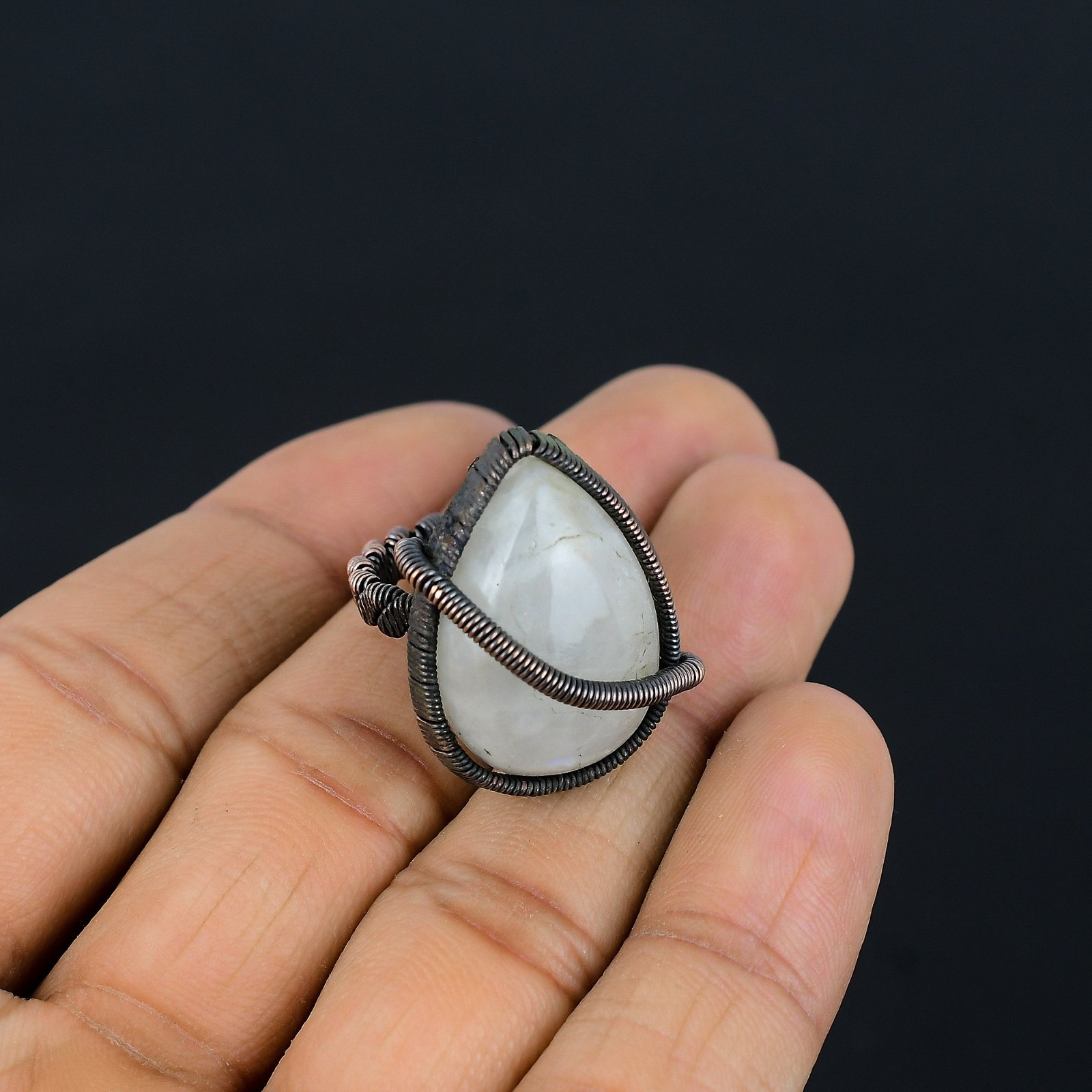 как выглядит Moonstone Gemstone Copper Wire Wrapped Handmade Beautiful Jewelry Ring фото