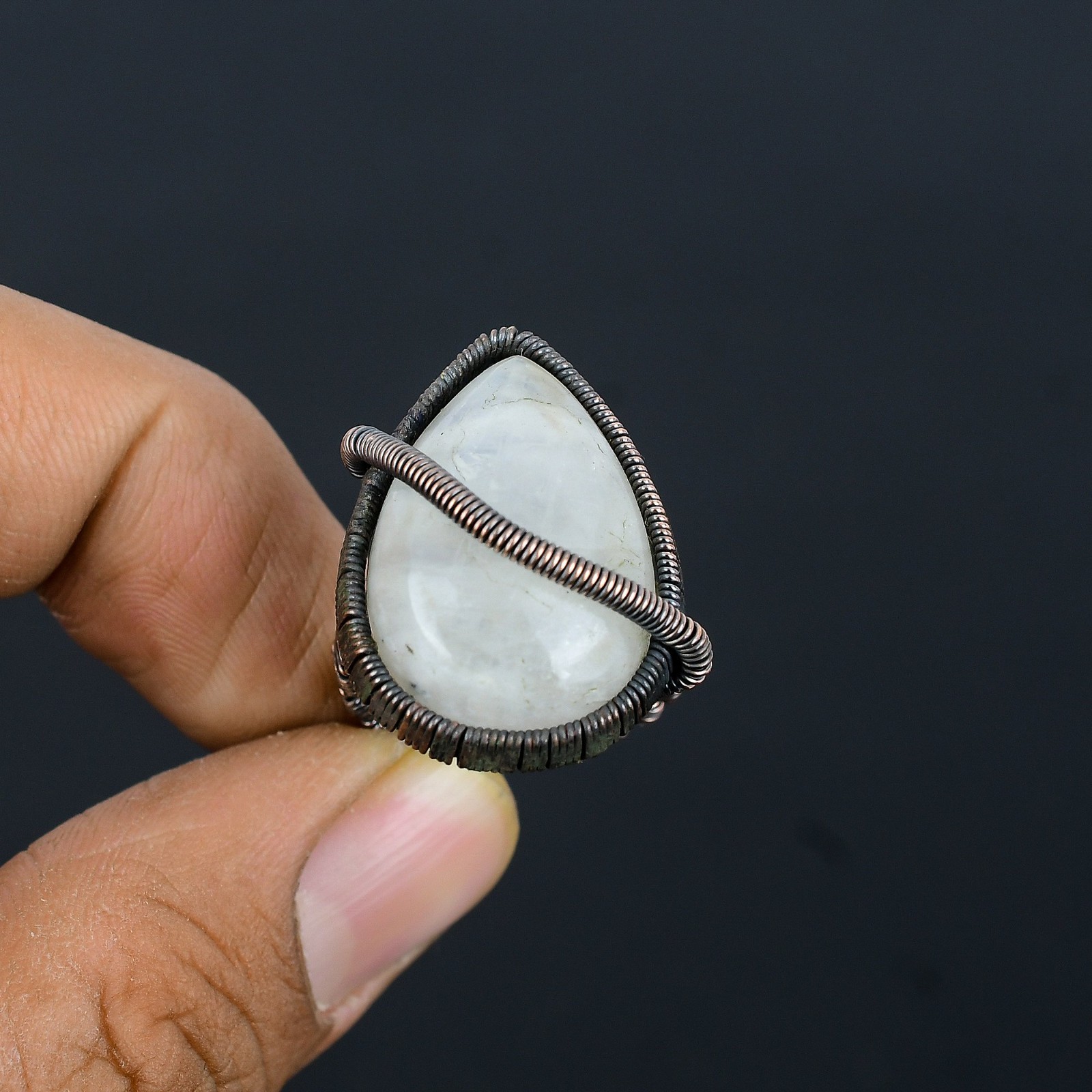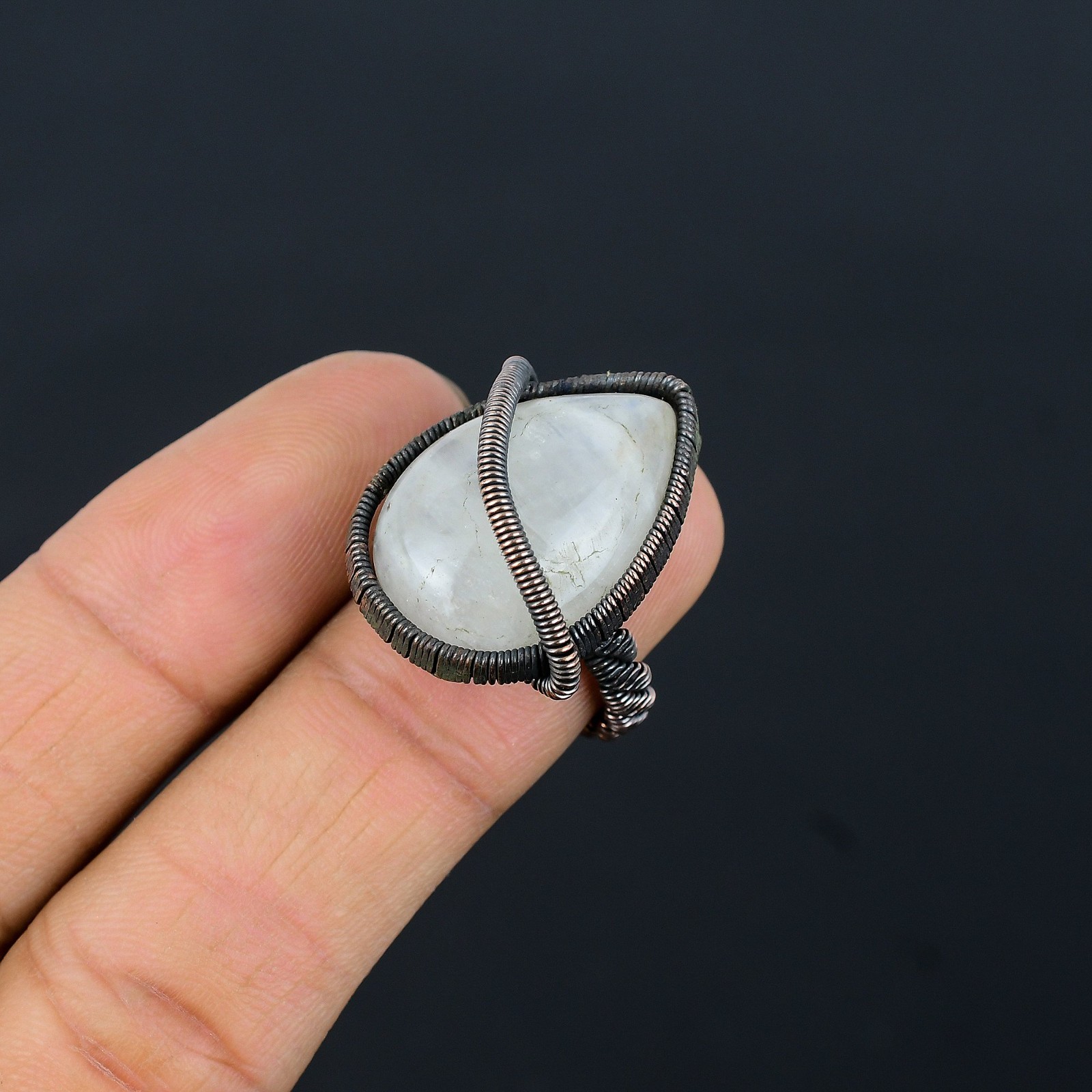 Moonstone Gemstone Copper Wire Wrapped Handmade Beautiful Jewelry Ring
