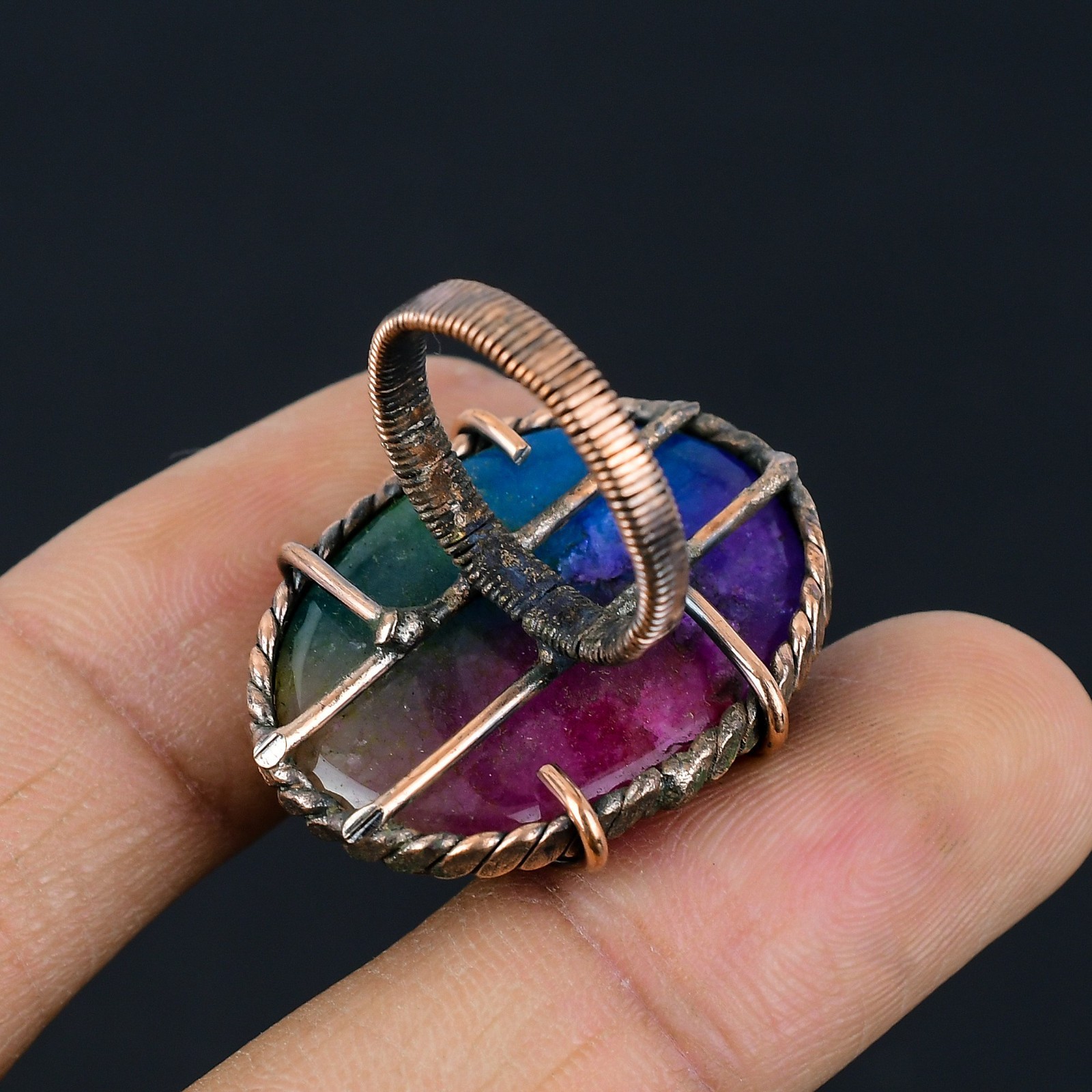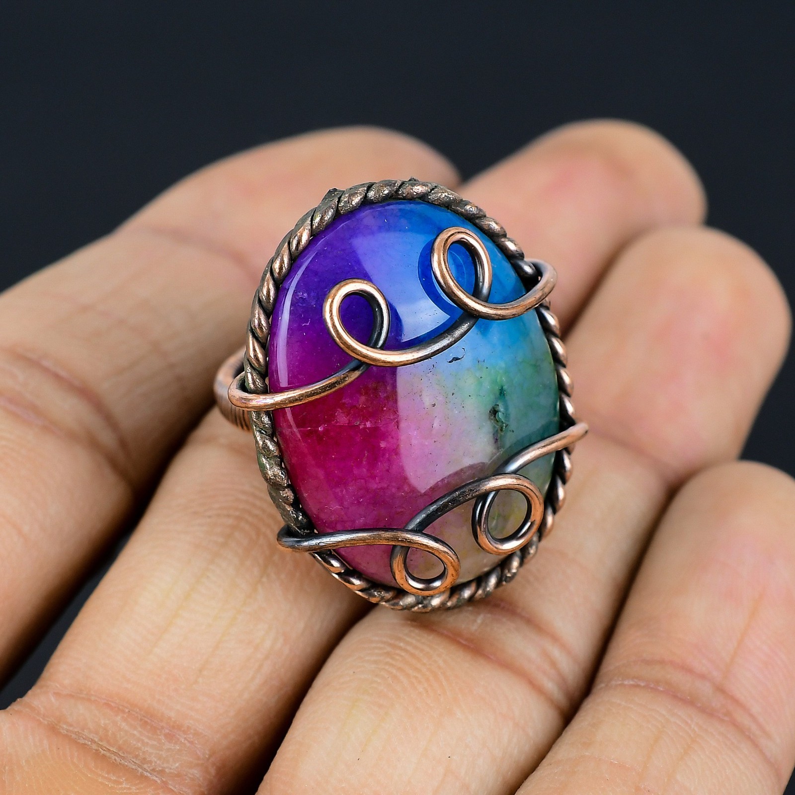 как выглядит Rainbow Solar Quartz Handmade Gemstone Copper Wire Wrapped Wedding Jewelry Ring фото