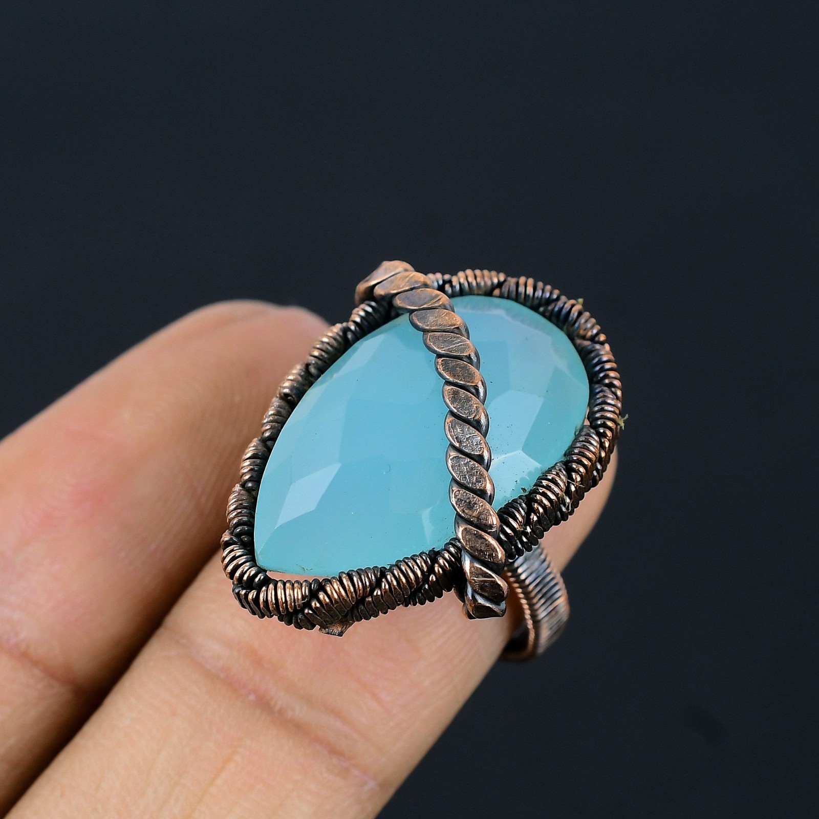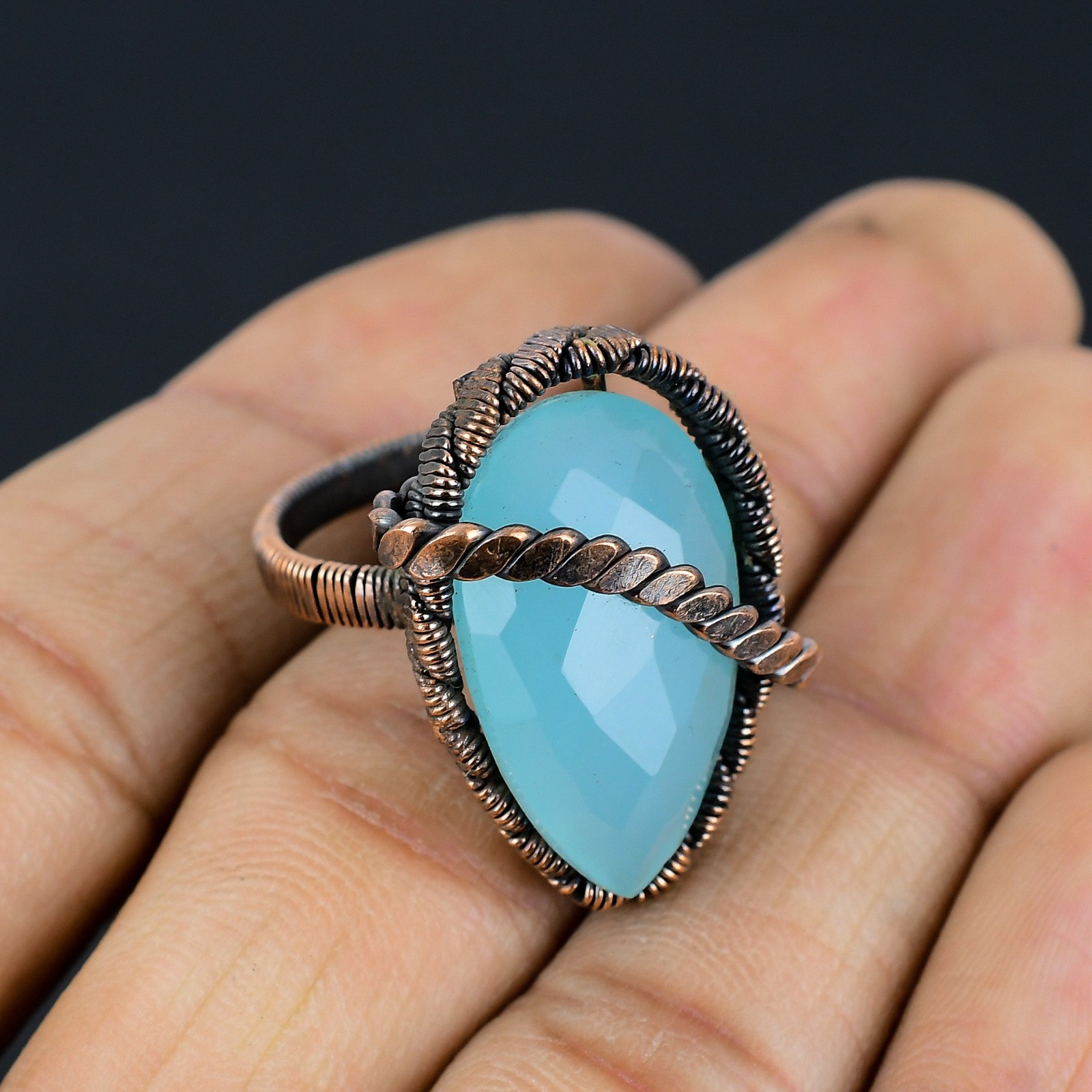 как выглядит Blue Chalcedony Handmade Gemstone Copper Wire Wrapped Wonderful Jewelry Ring фото