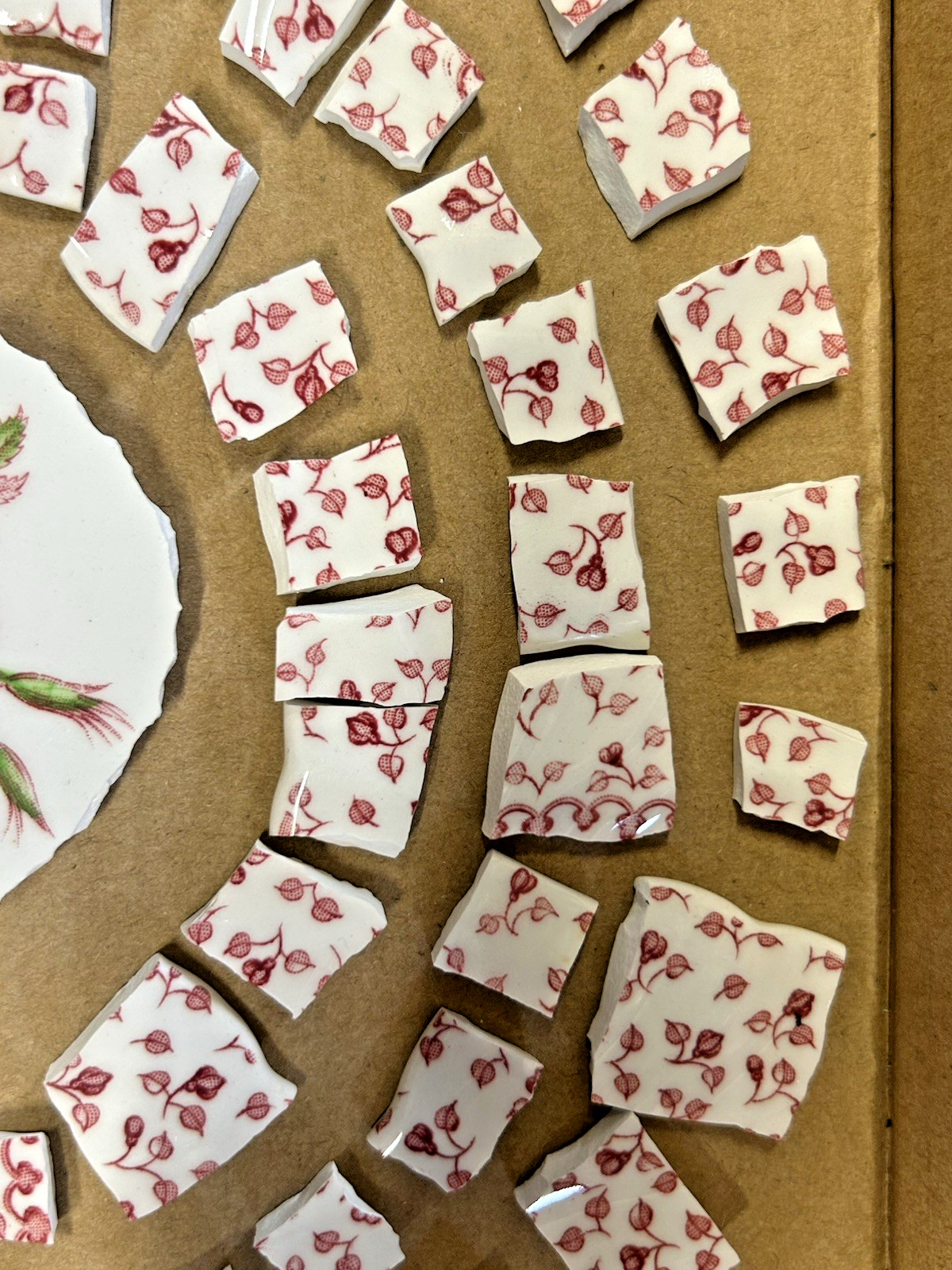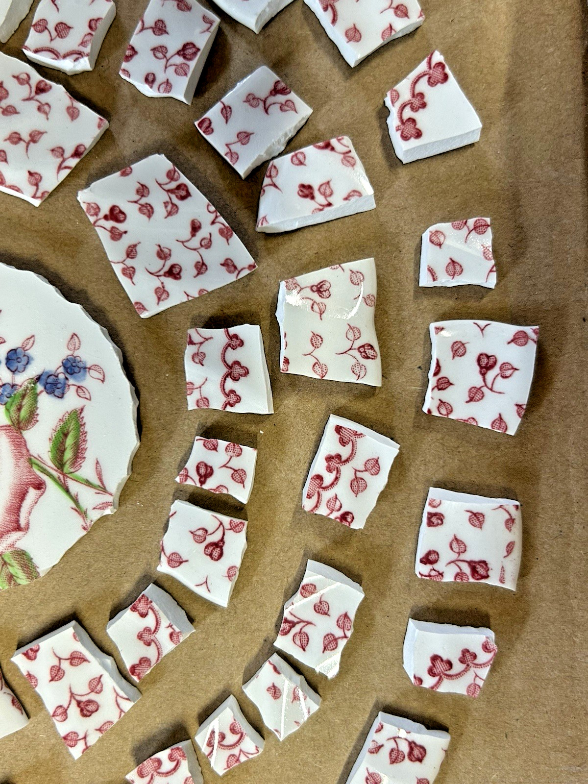 Broken China Plate Mosaic Pink Roses Rosebuds Floral w/ Focal