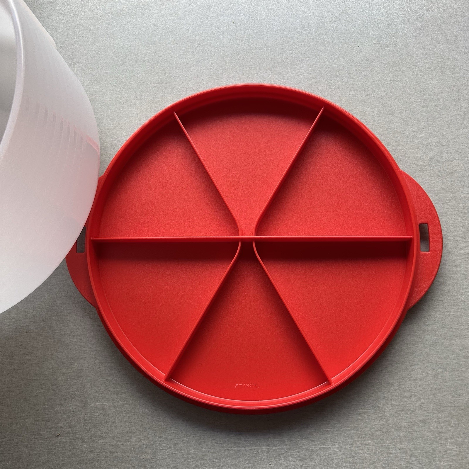 как выглядит New Tupperware UNIQUE and HUGE Round Cake Taker in Bright Red/Clear Color фото