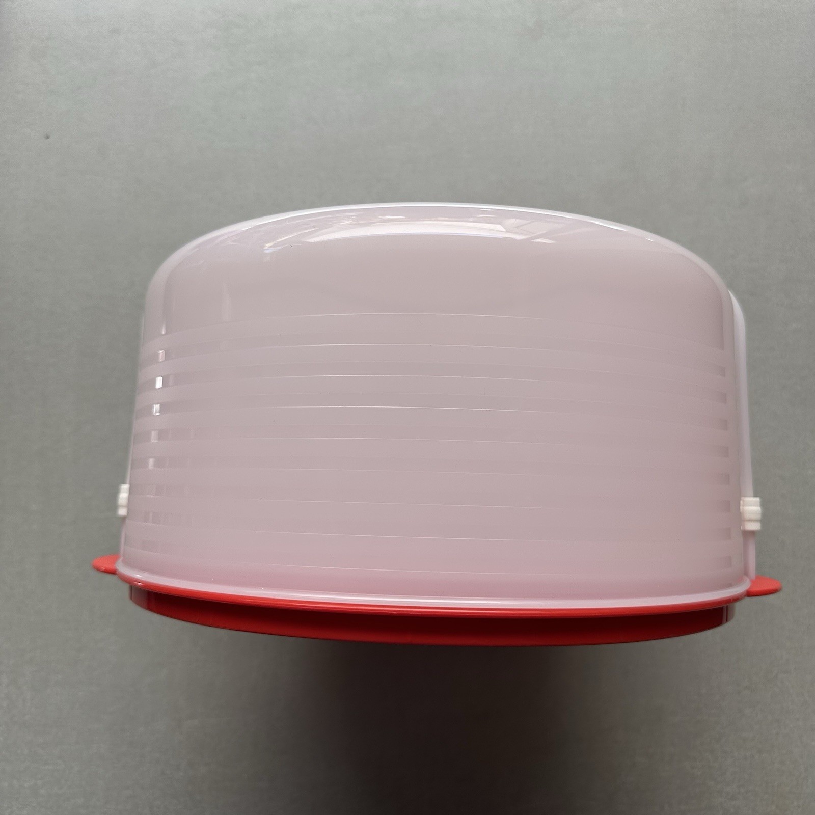 • New Tupperware UNIQUE and HUGE Round Cake Taker in Bright Red/Clear Color