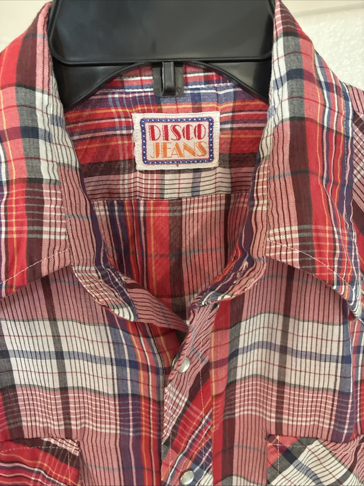 Vintage Western Pearl Snap Shirt 70s Disco Jeans USA colors