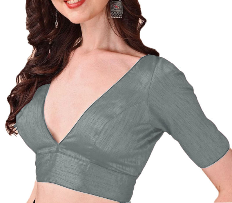 Way2Like V-Neck Saree Blouse Short Sleeves Ethnic Readymade Indian Sari Choli