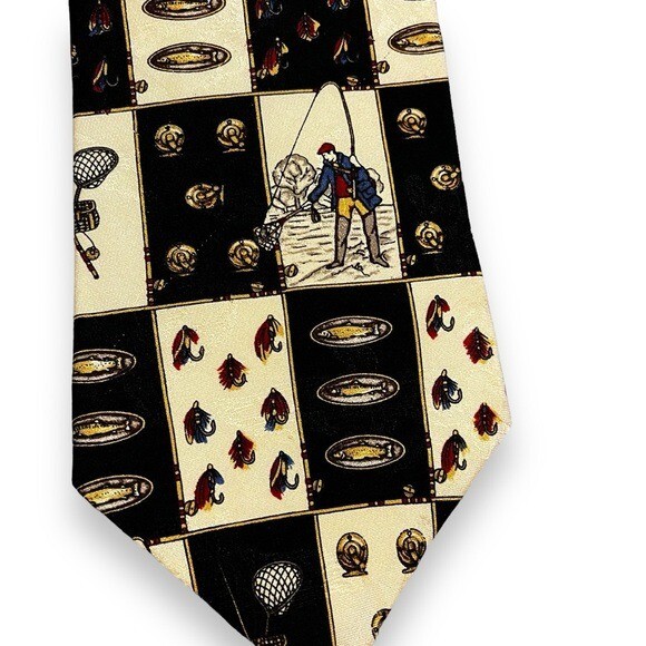 как выглядит Lot of 4 Fish Silk Ties Novelty Prints Field Stream Nautical Retro Vintage USA фото