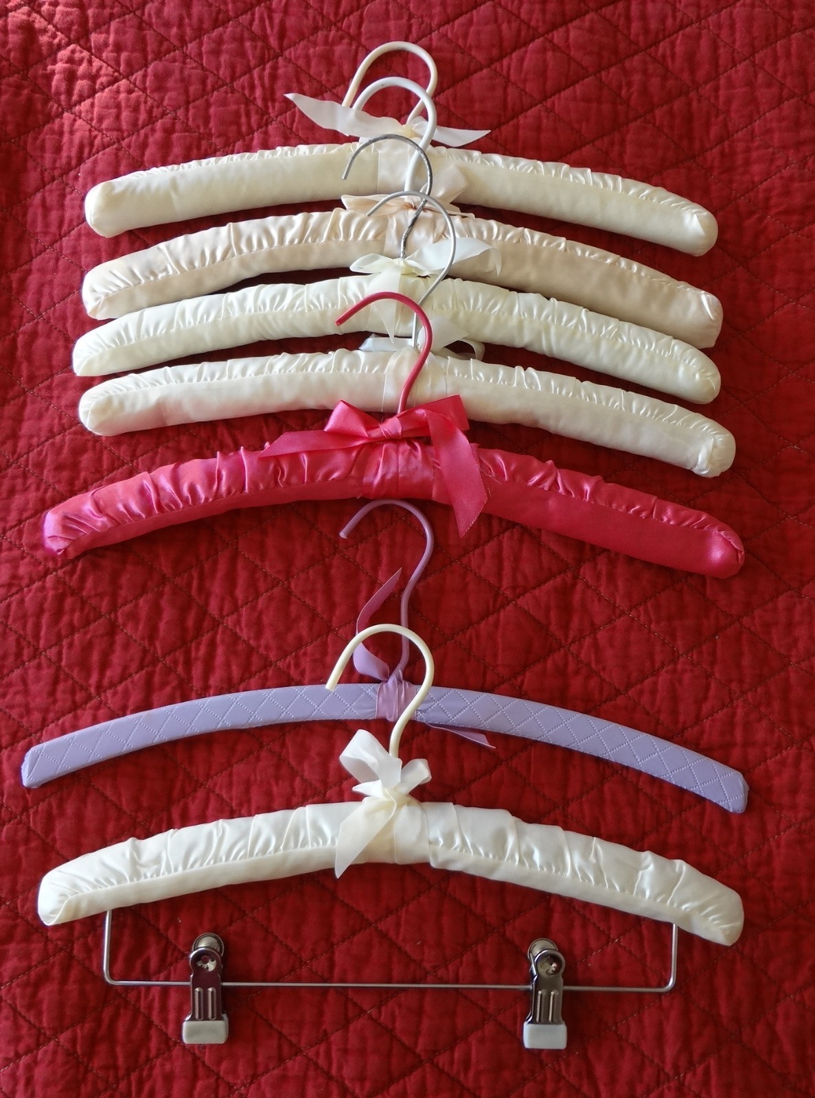 7 Vintage 1980's Satin Cream/Pink /Purple Clothing Hangers