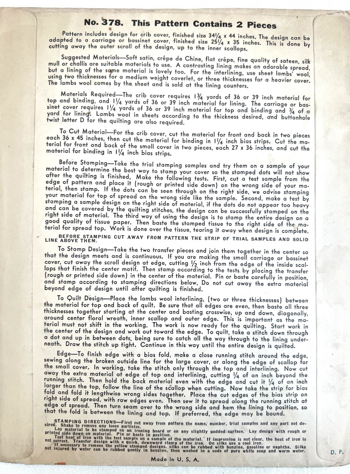 • Rare Vintage Quilted Transfer for Crib-Cover Bassinet Pattern McCall 378 1936