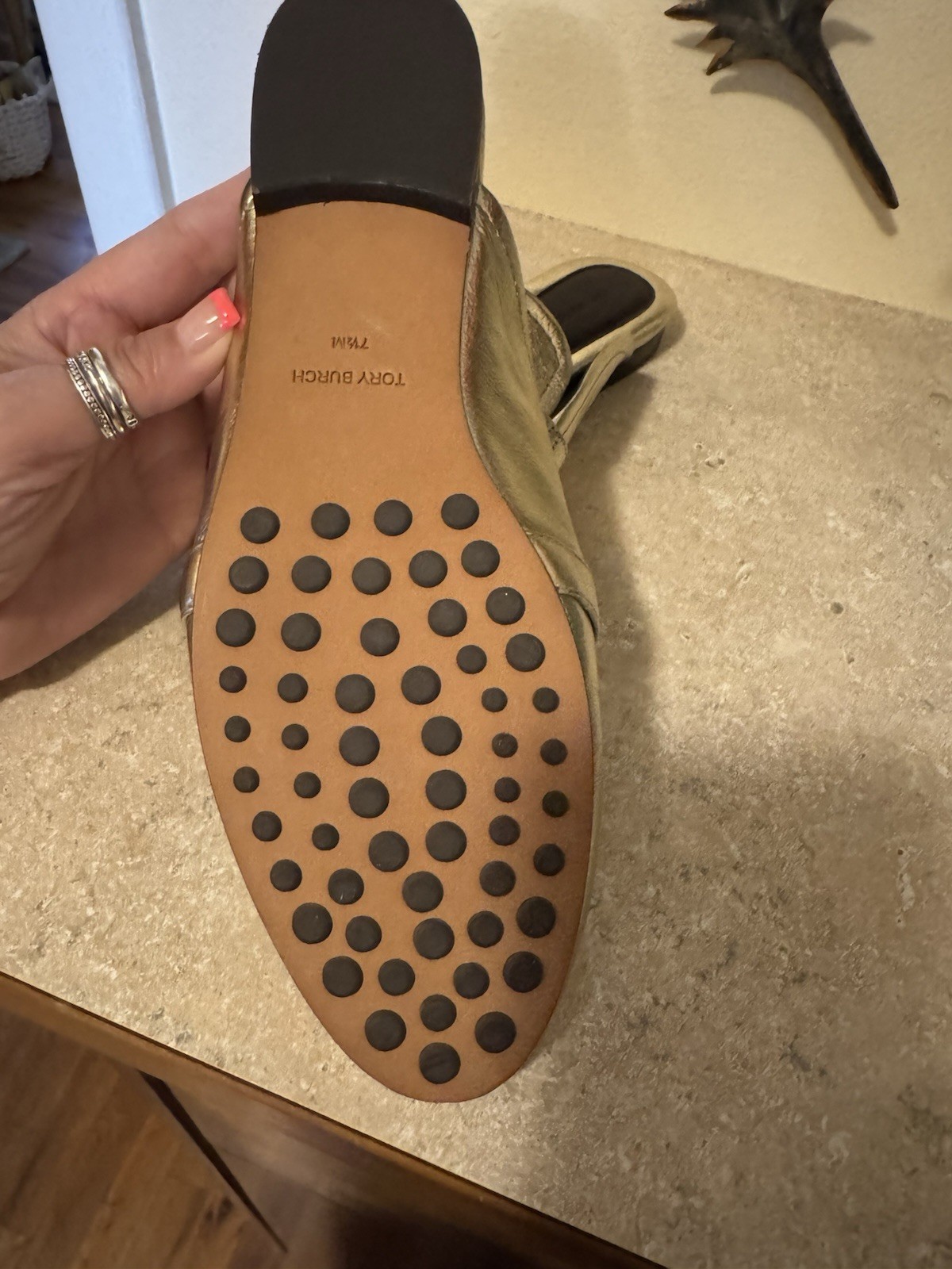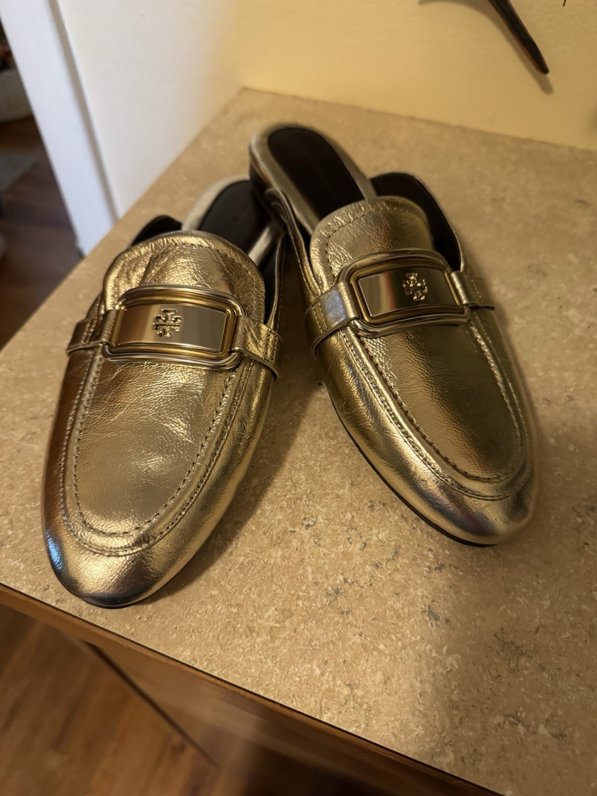 как выглядит Tory Burch Georgia Backless Loafer Good Metallic Size 7.5 NEW фото