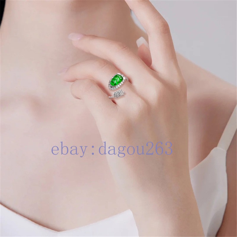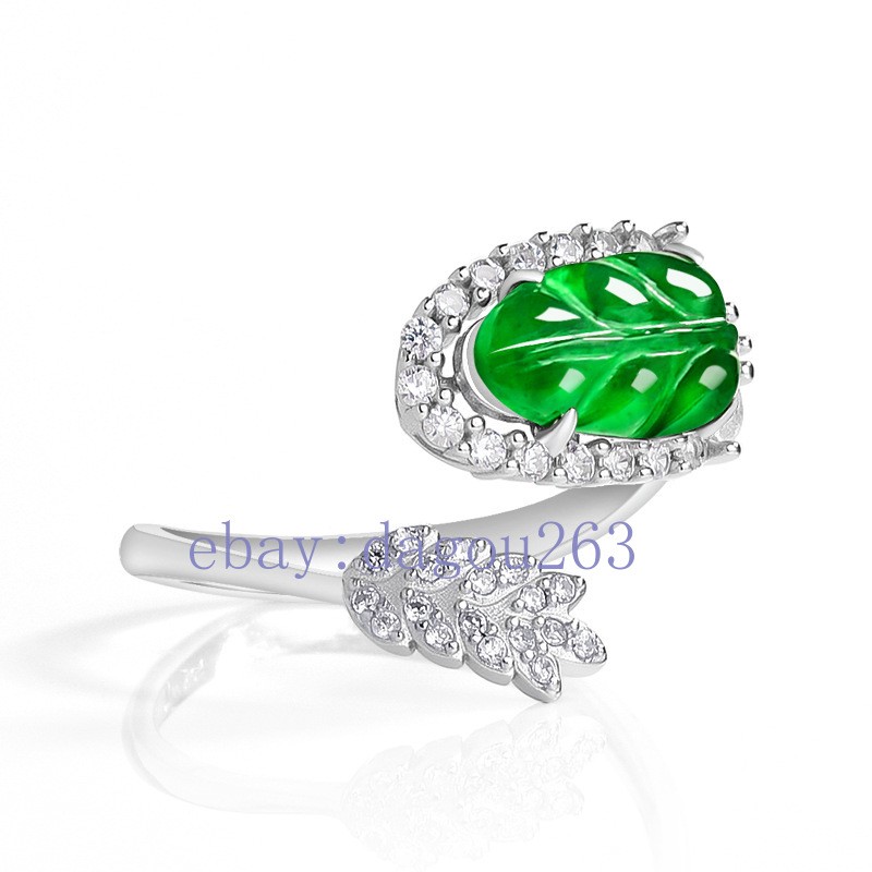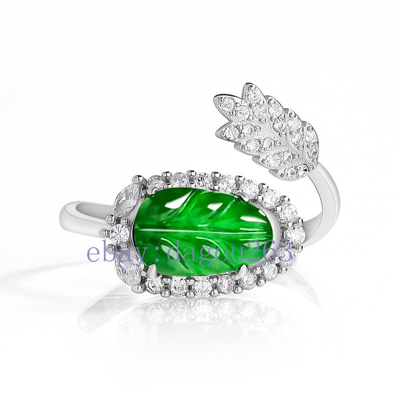как выглядит Certified Natural Myanmar A-grade jade leaf 925 silver inlaid ring фото