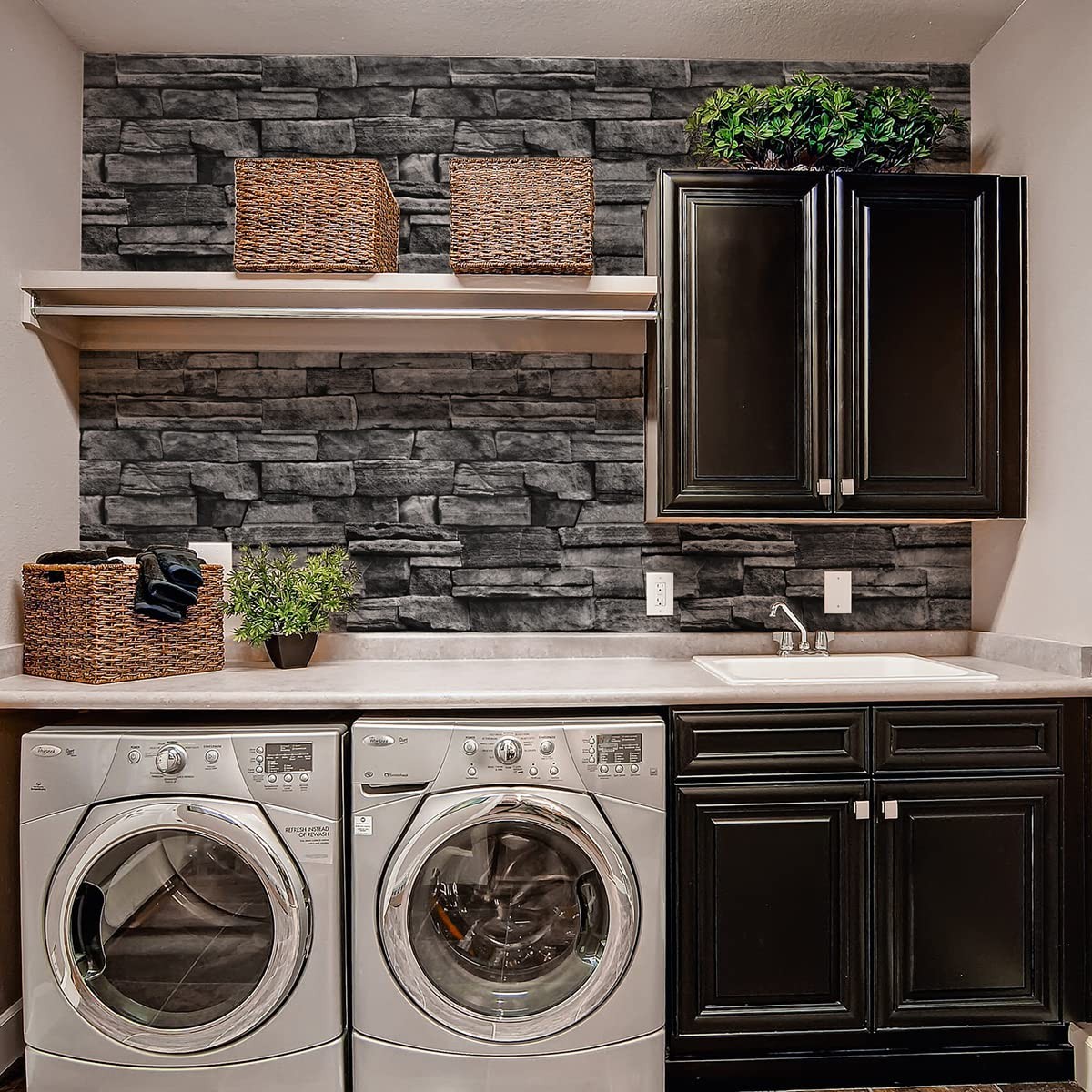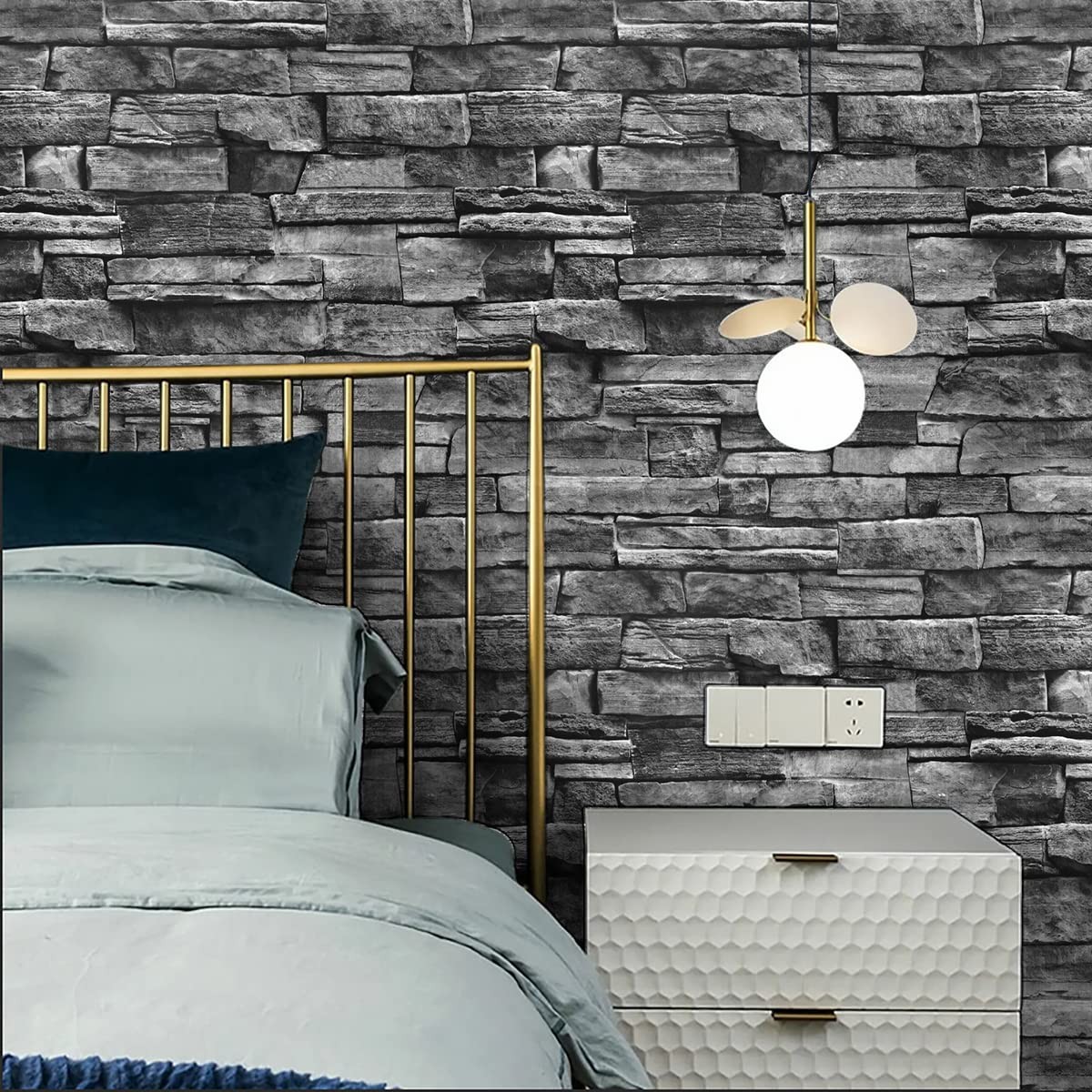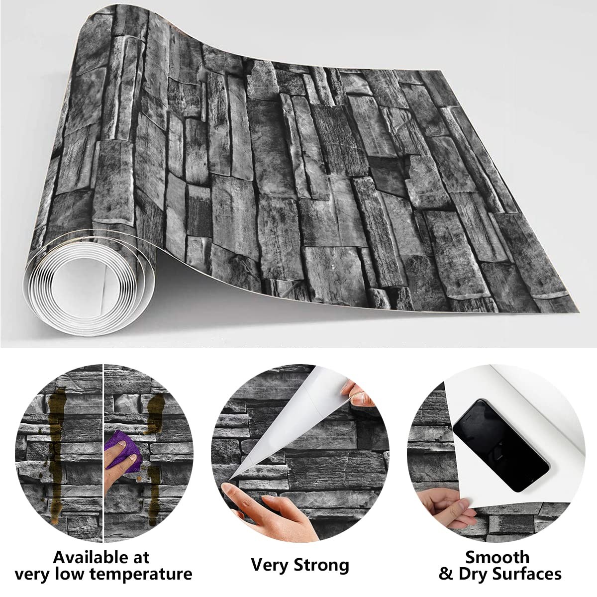 Jeweluck Grey Brick Wallpaper Peel and Stick Wallpaper 17.7Inch 118.1Inch Faux
