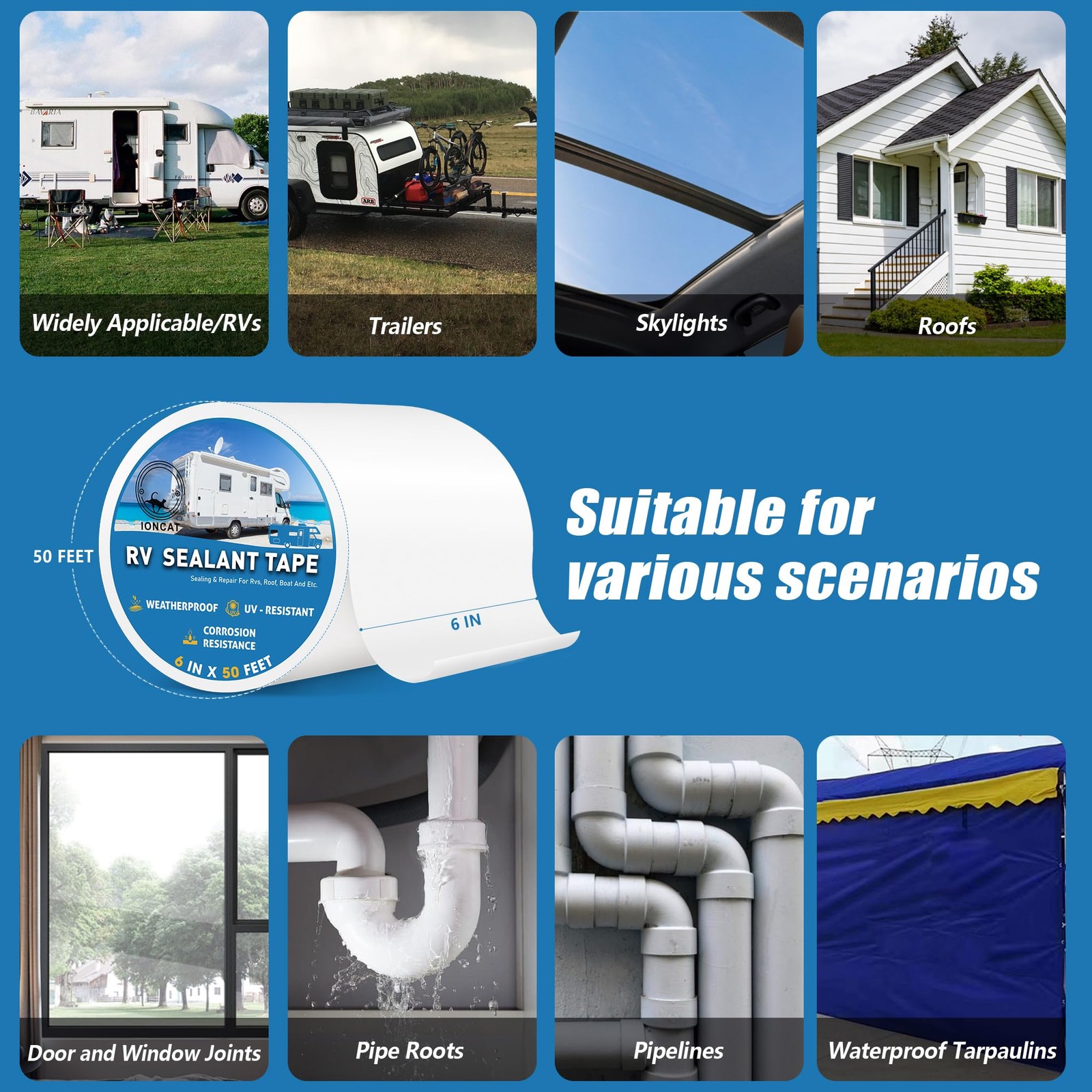 RV Roof Sealant Tape, 6 Inch X 50 Feet RV Repair Seal Tape for Camper Trailer