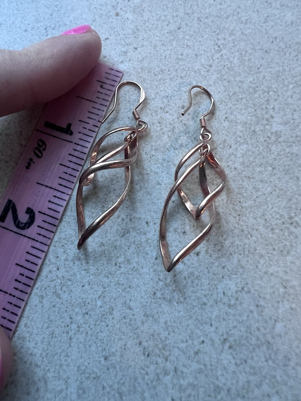 925 Sterling Silver Rose Gold Tone Dangle Drop Twist Pierced Earrings 2 C1