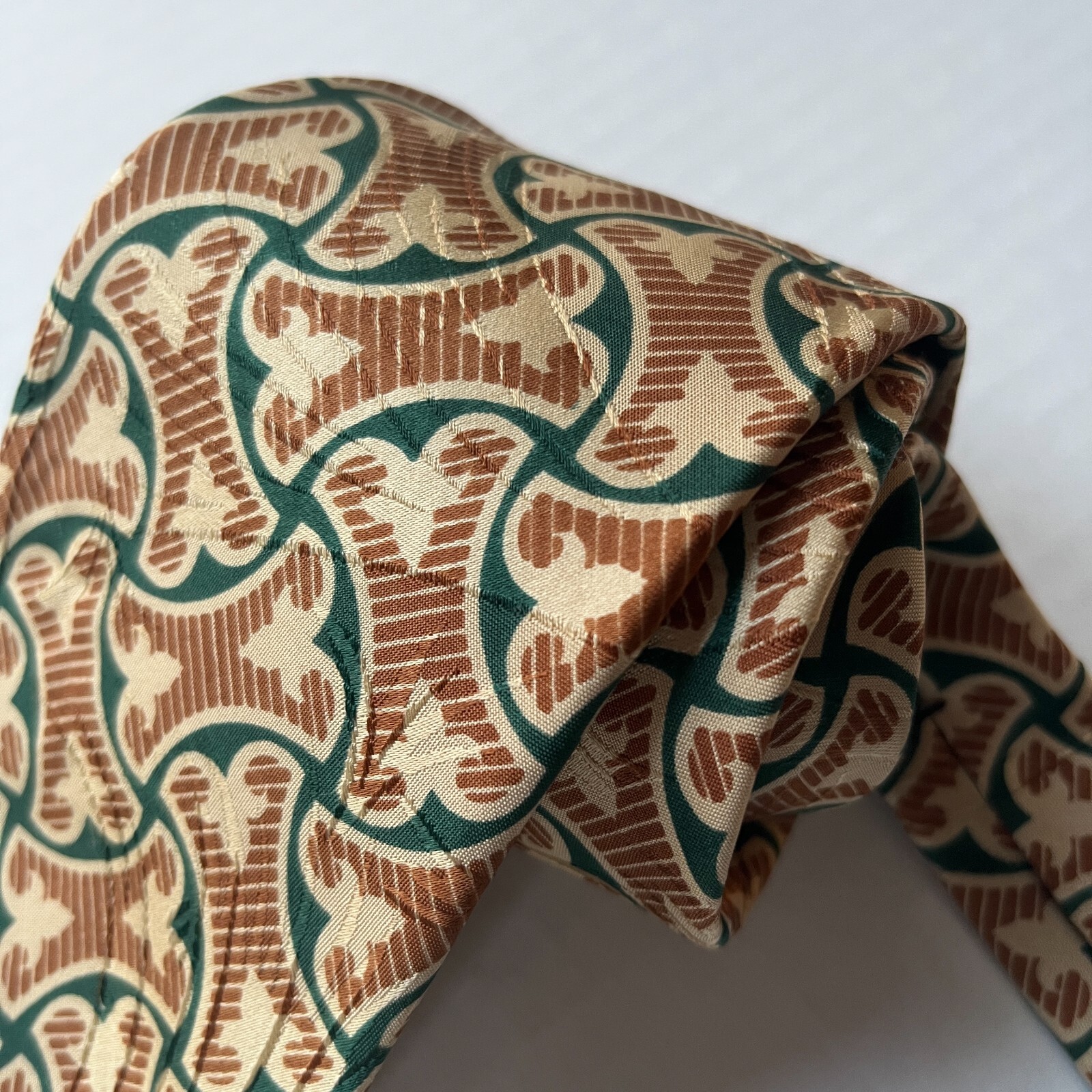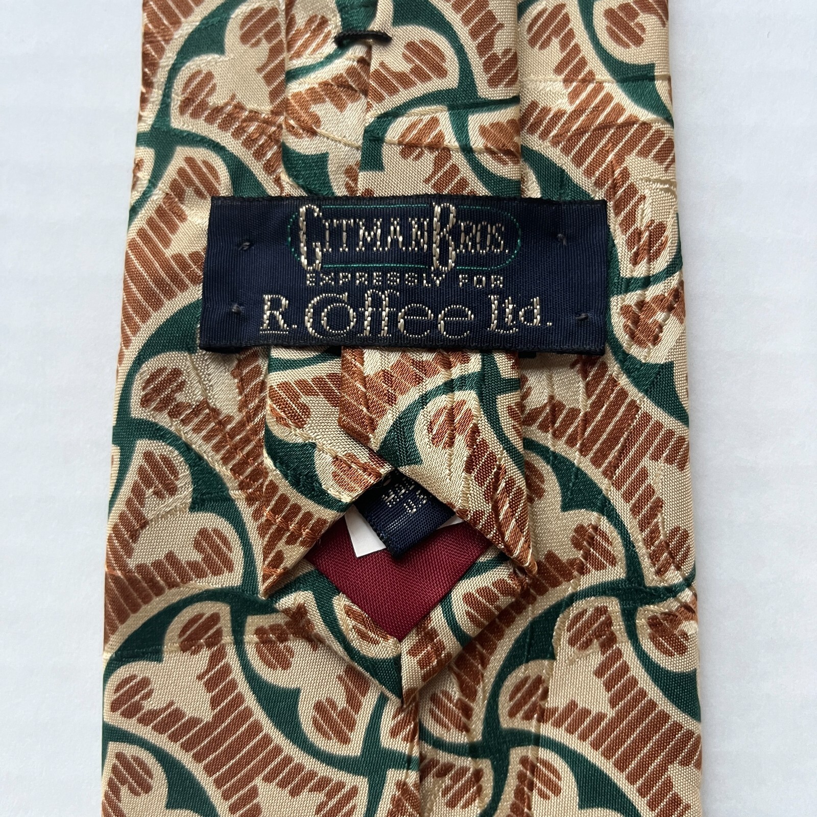 Vtg Gitman Bros Silk Neck Tie Men Foulard Green Brown Gold USA Made 3.5x56 SHORT