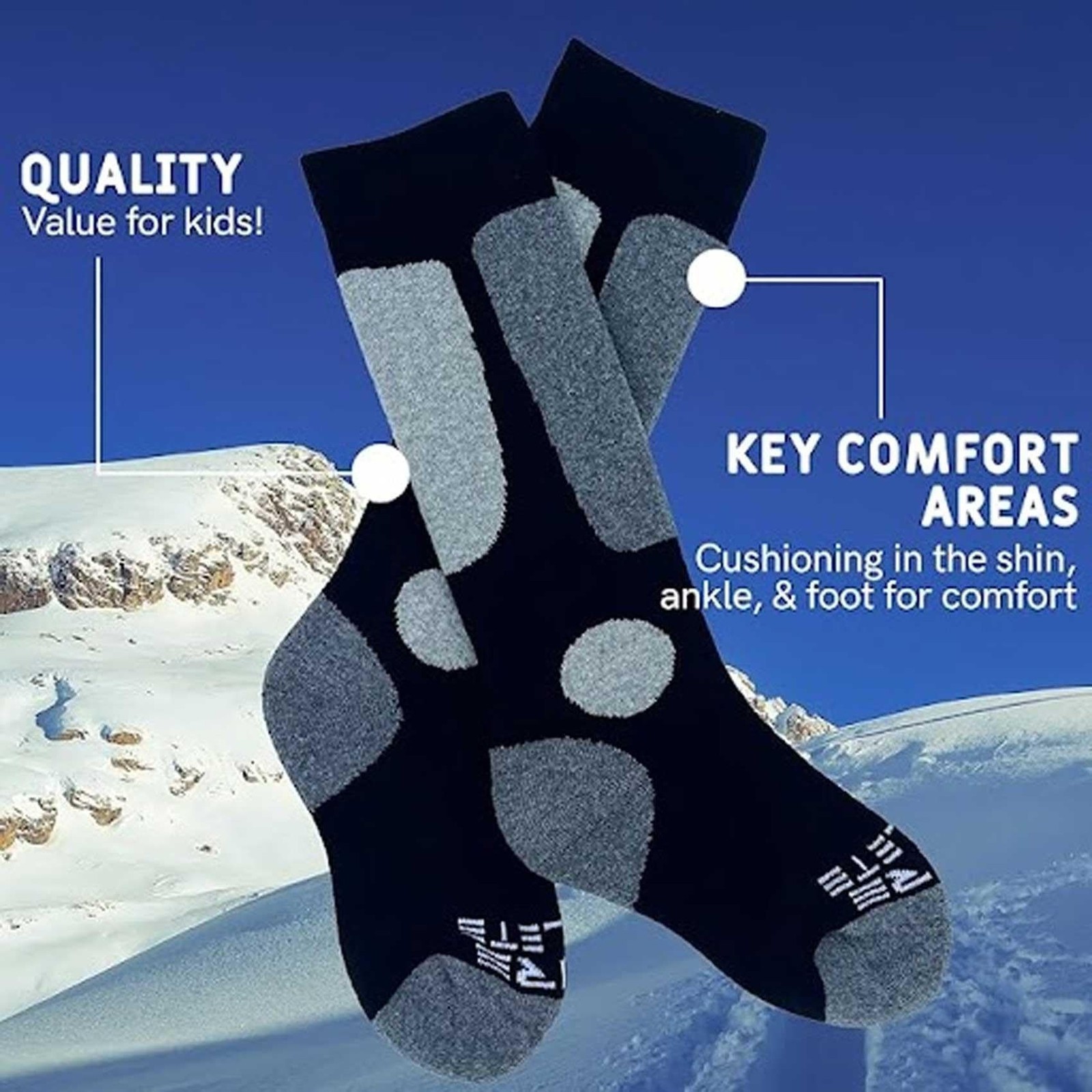Kids Value Ski Socks for Boys, Girls 8211; Snowboarding, Winter, Cold Weather