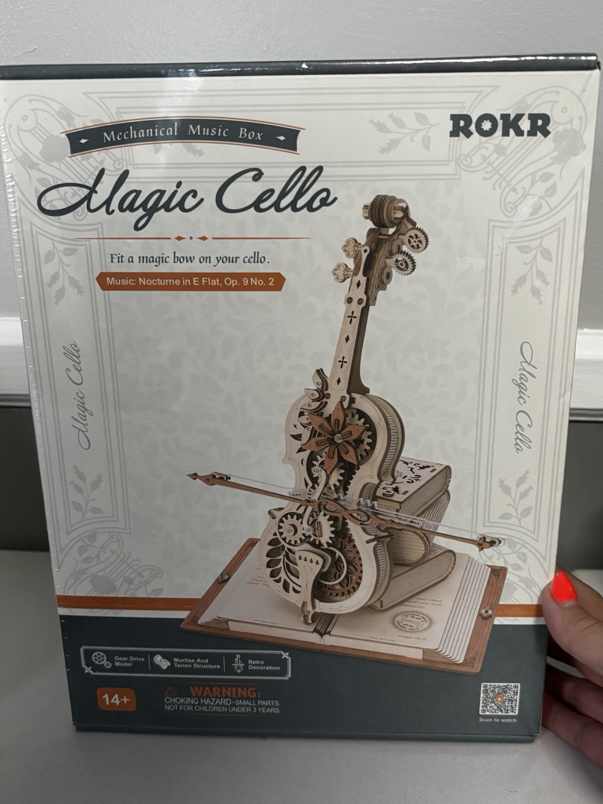 как выглядит ROKR Magic Cello Mechanical Music Box 3D Wooden Puzzle Model Kit Stem Project фото