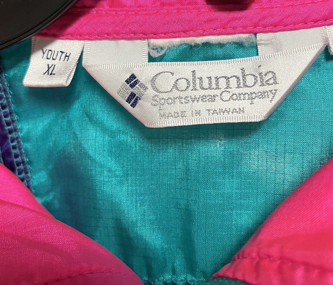 как выглядит Vintage Columbia Purple Pink Green Radial Sleeve Windbreaker Jacket Youth XL фото