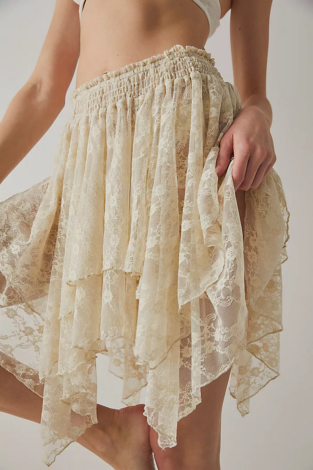 NEW FREE PEOPLE INTIMATELY GOLDEN EVENING HALF SLIP ASYMMETRICAL LACE SKIRT XS