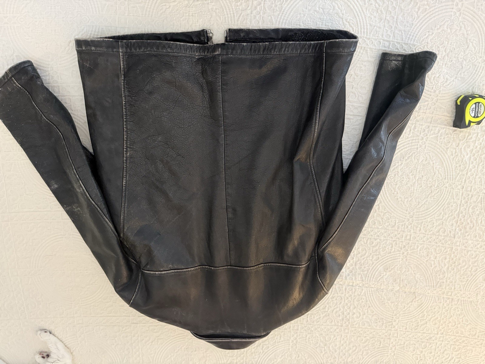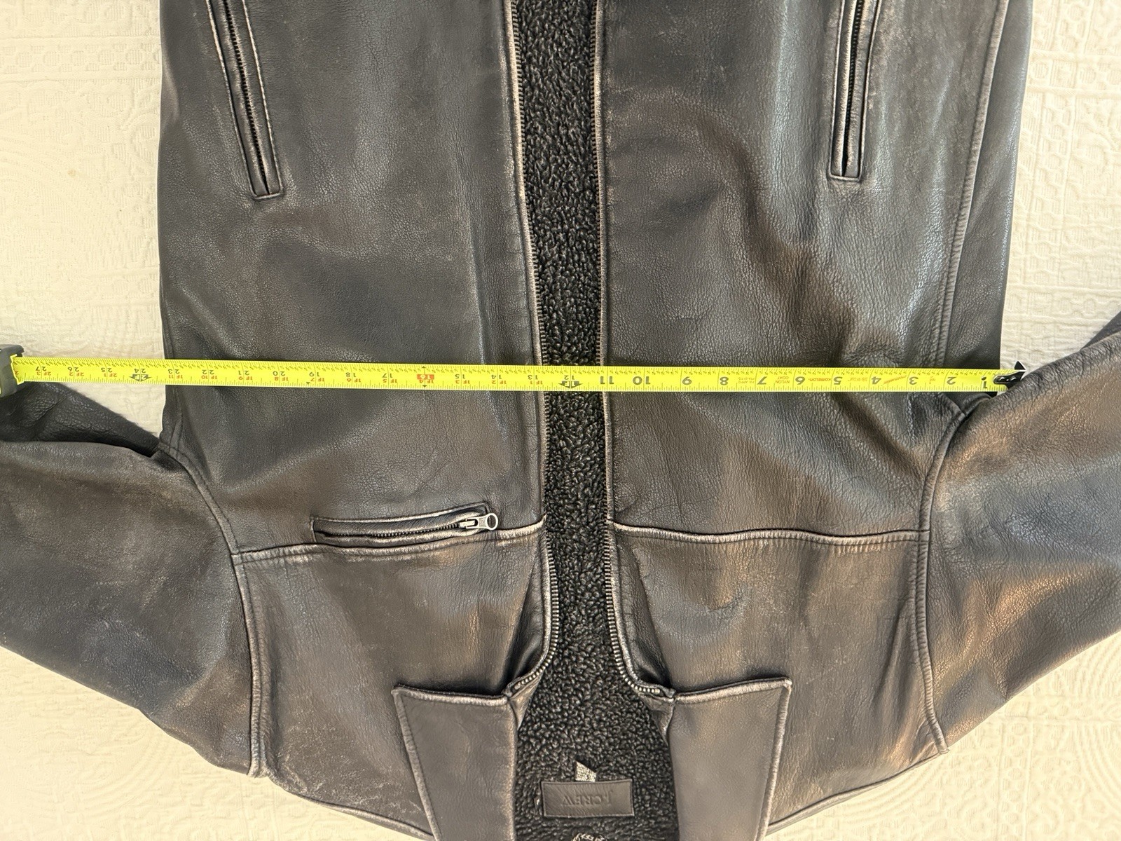 как выглядит J.CREW Black Leather Wool Lined Jacket Vintage 90s/Y2k Size XL фото