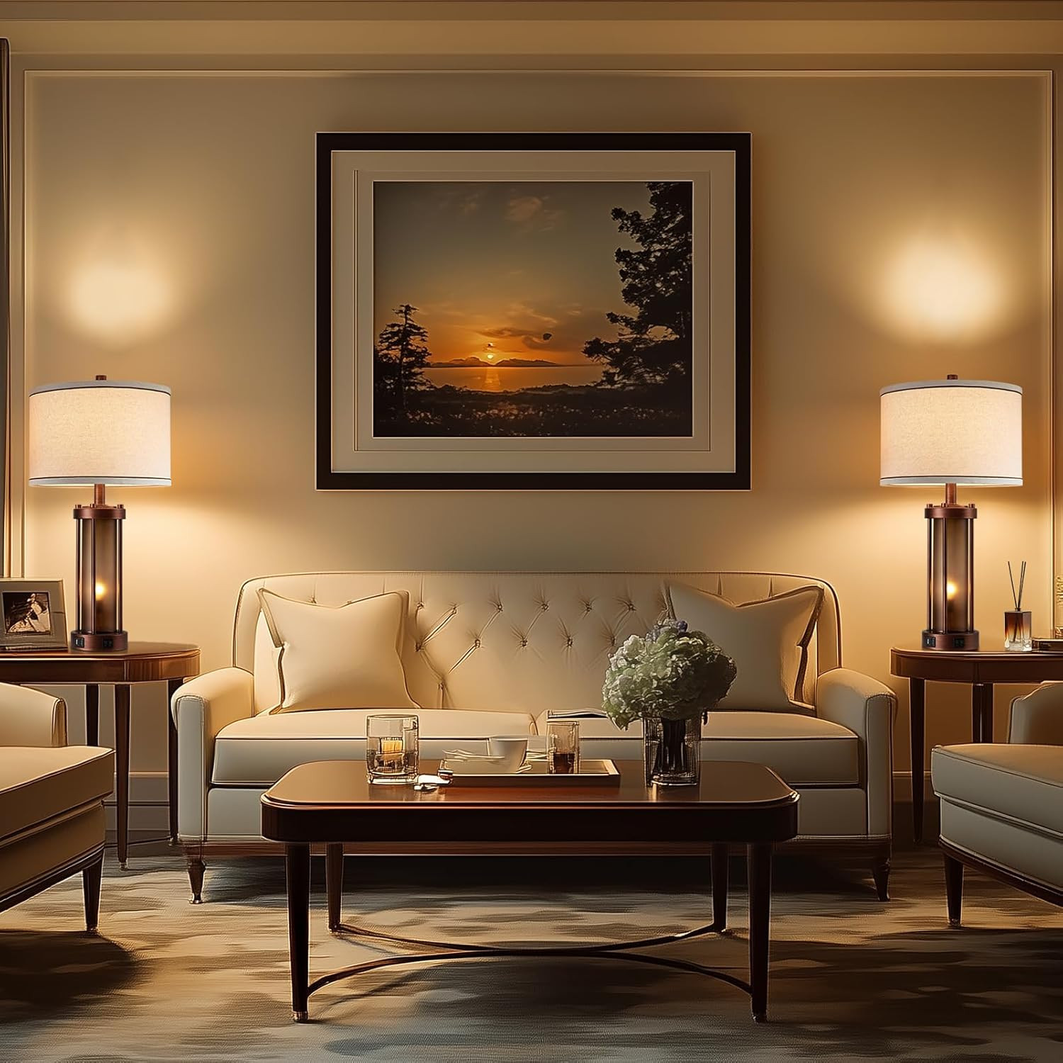 Set of 2 Farmhouse Table Lamps for Living Room, Rustic Bedside Lamps with 2 USB