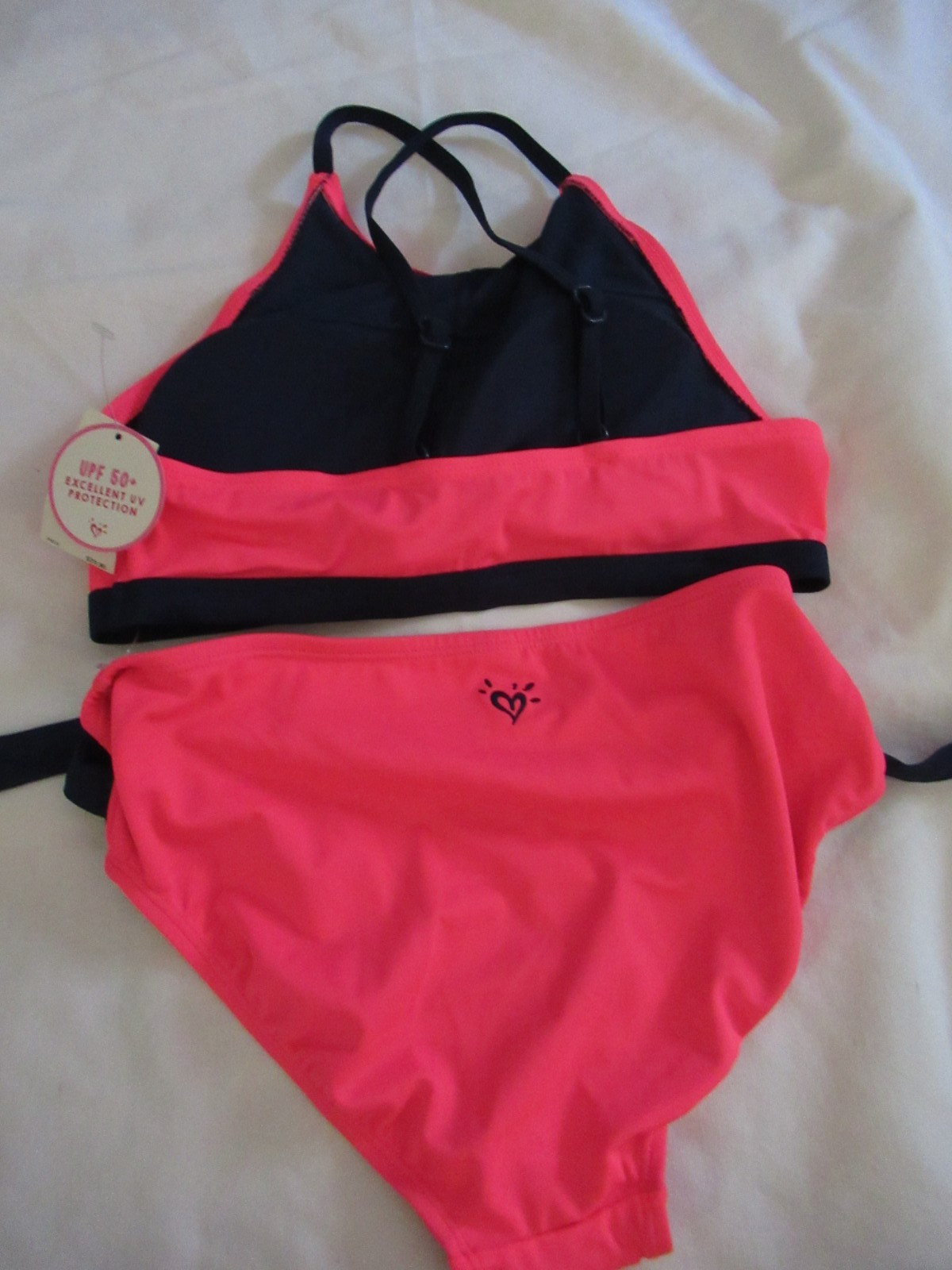 JUSTICE Girls Size 16 2 PC Swimsuit Bright Orange Purple Trim UPF 50 NWT