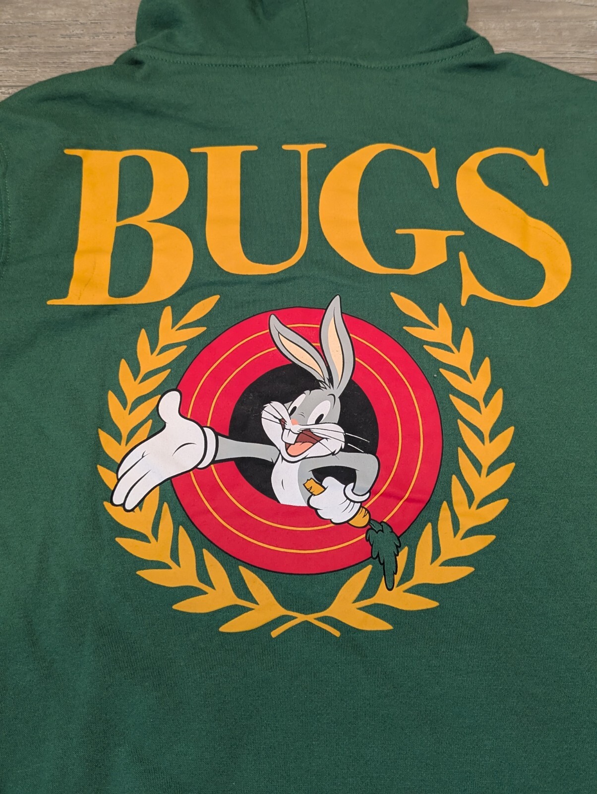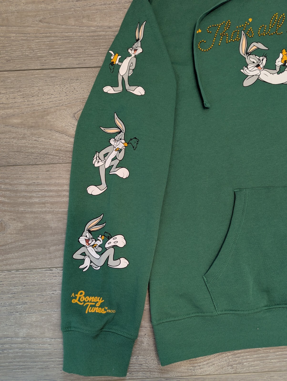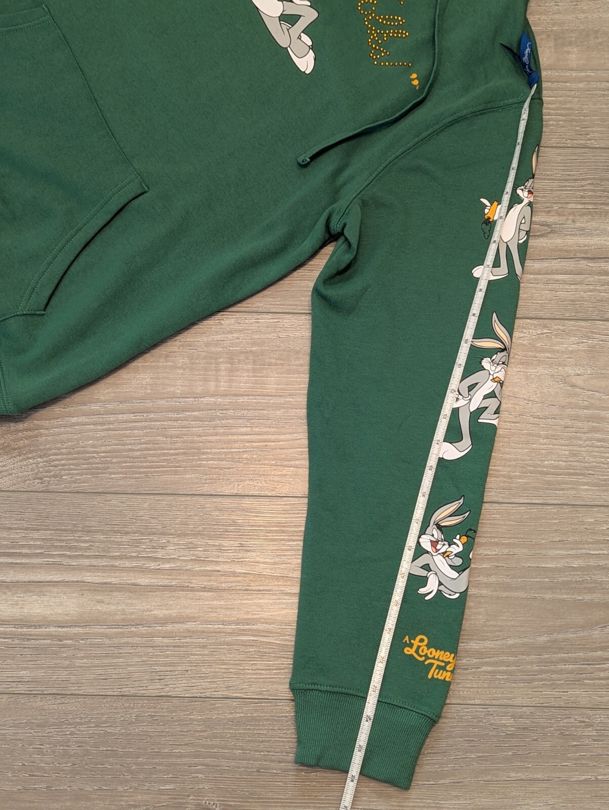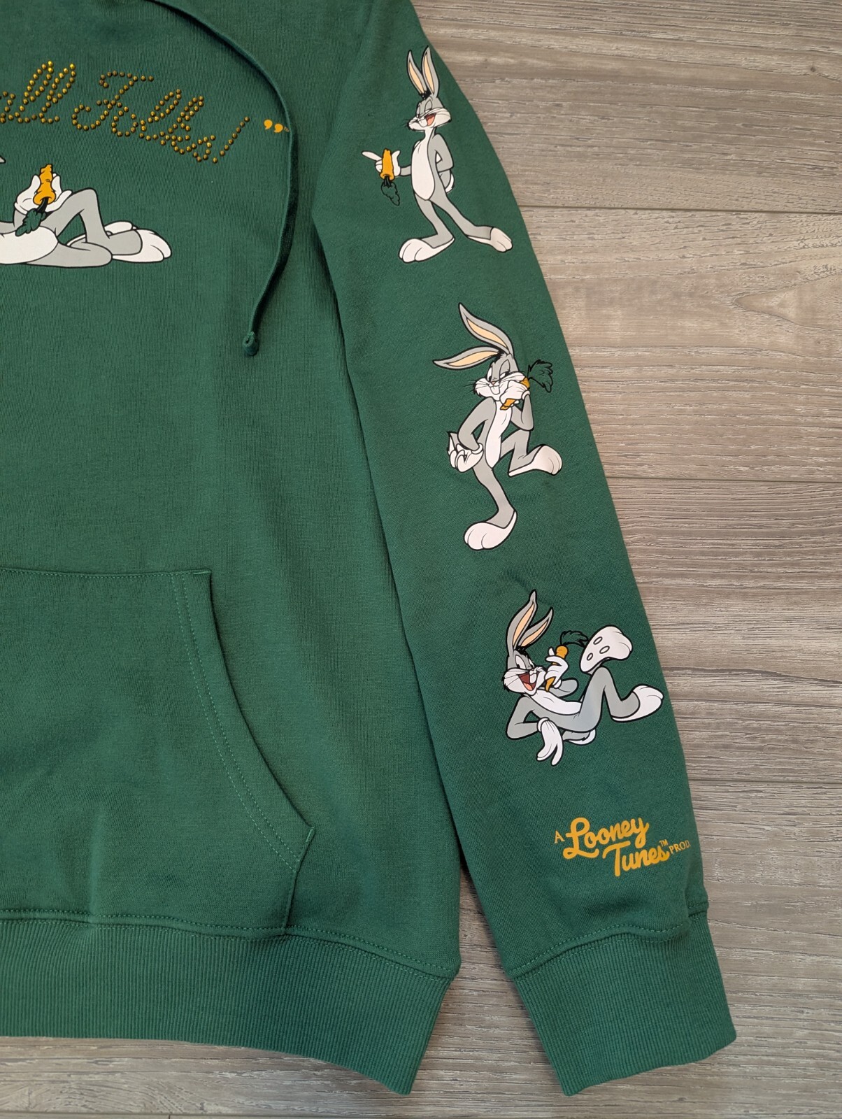 Looney Tunes Bugs Bunny Graphic Rhinestone Hoodie Sweater Green Womens Sz Large