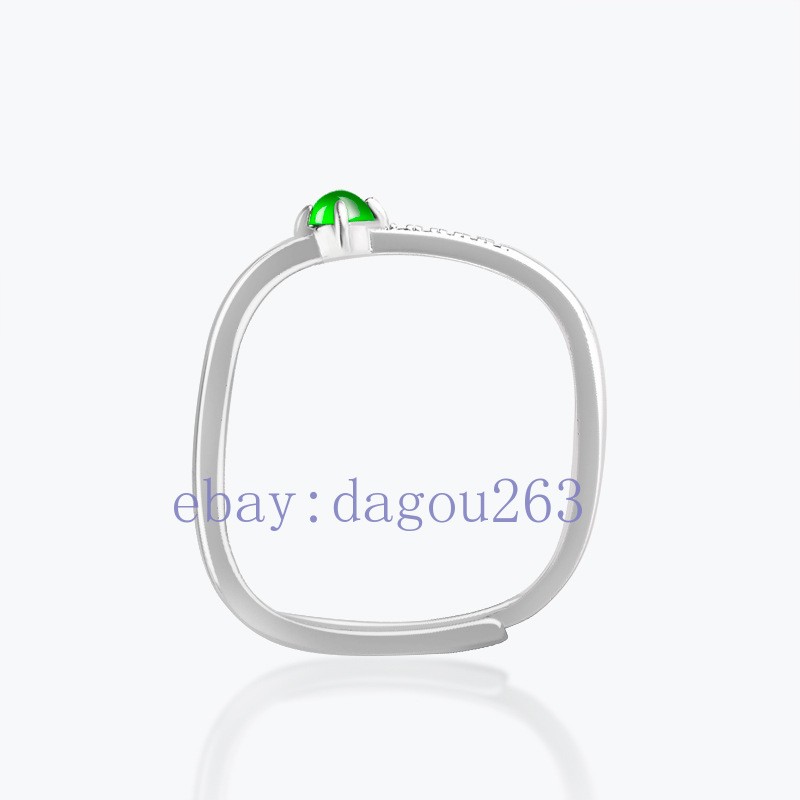 Certified natural A-grade jadeite glutinous Green 925silver inlaid square ring
