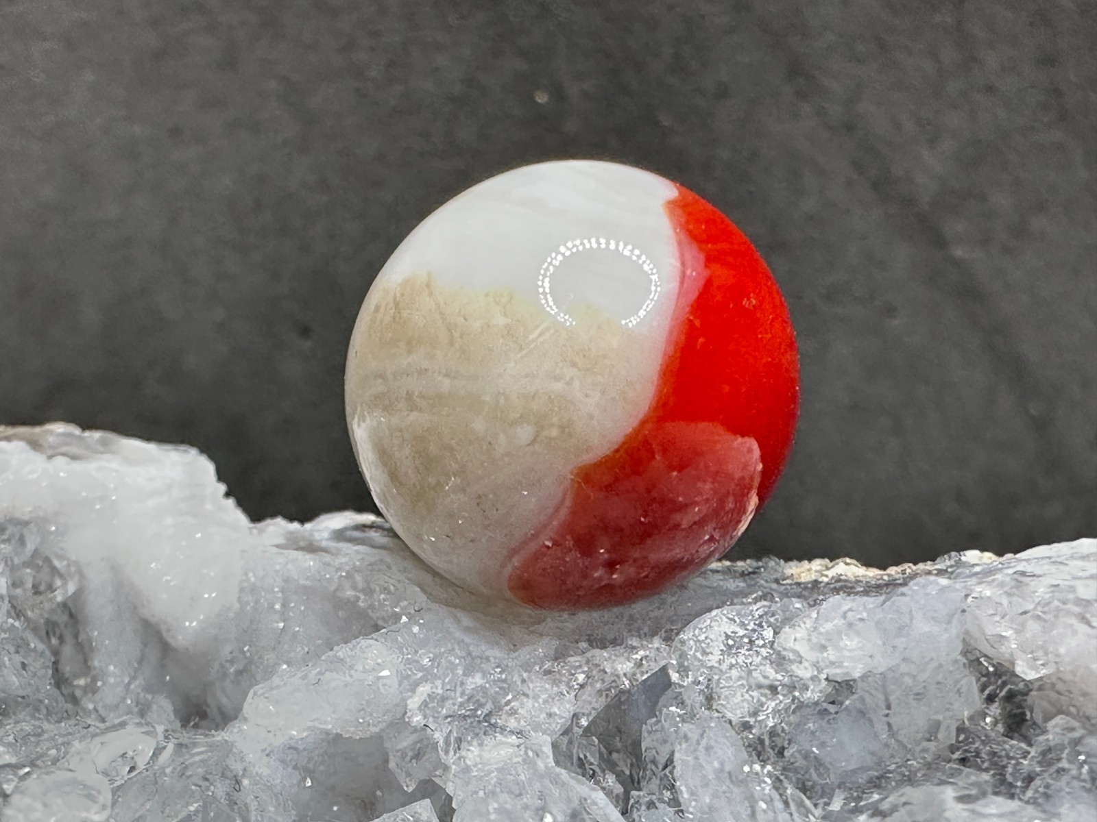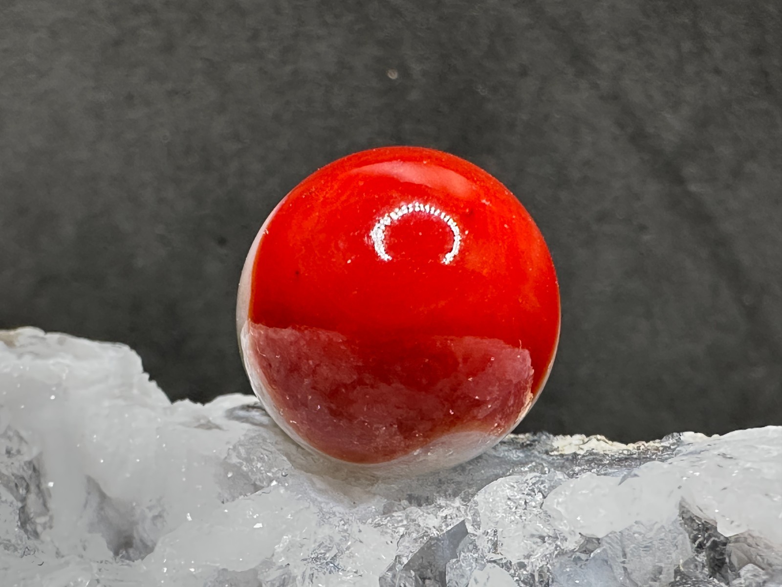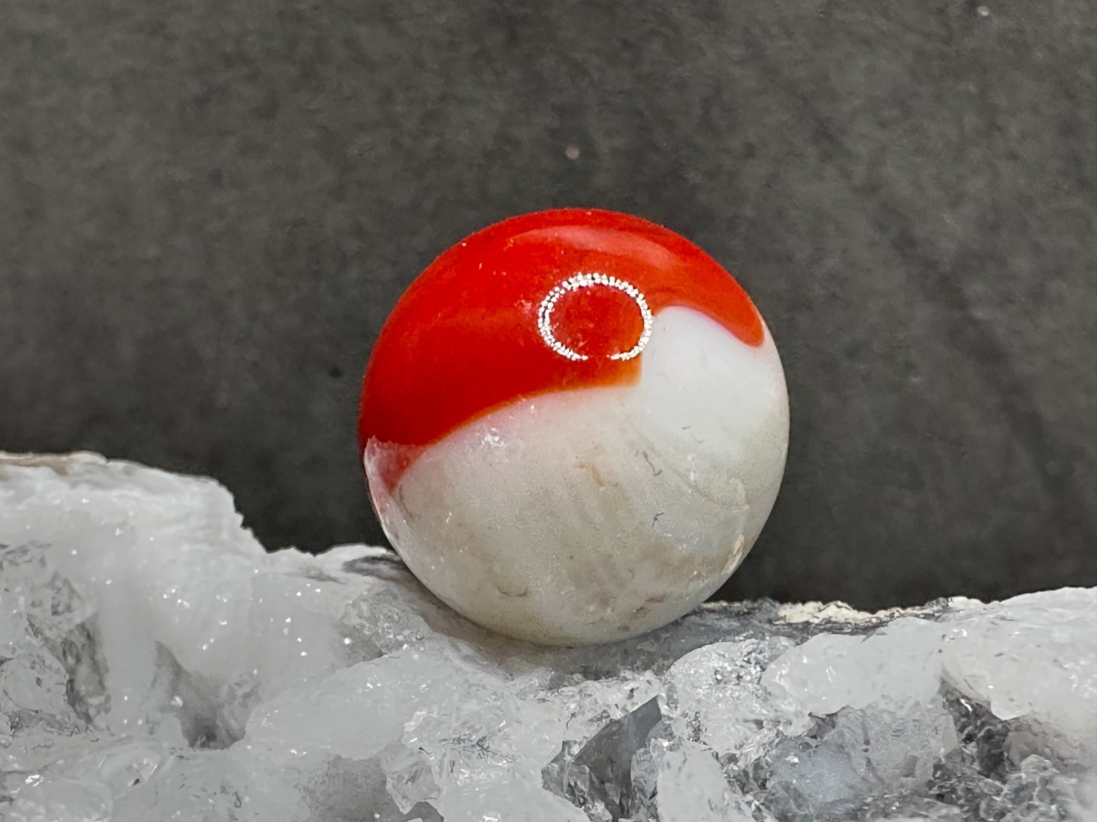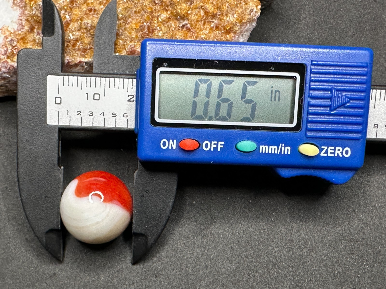 INTERESTING Vintage Akro Agate Patch Marble - RED WHITE w/Tan Streaks - .65