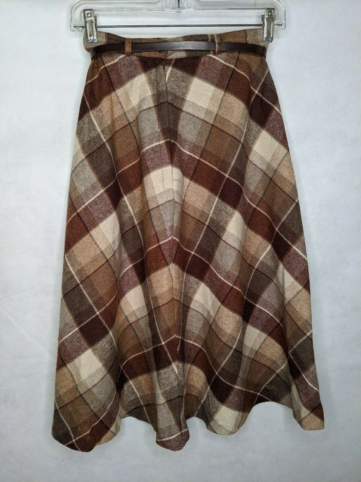 как выглядит Plaid Skirt Vintage Childrens Belt A-Line Brown Union Made Retro Jr Things фото
