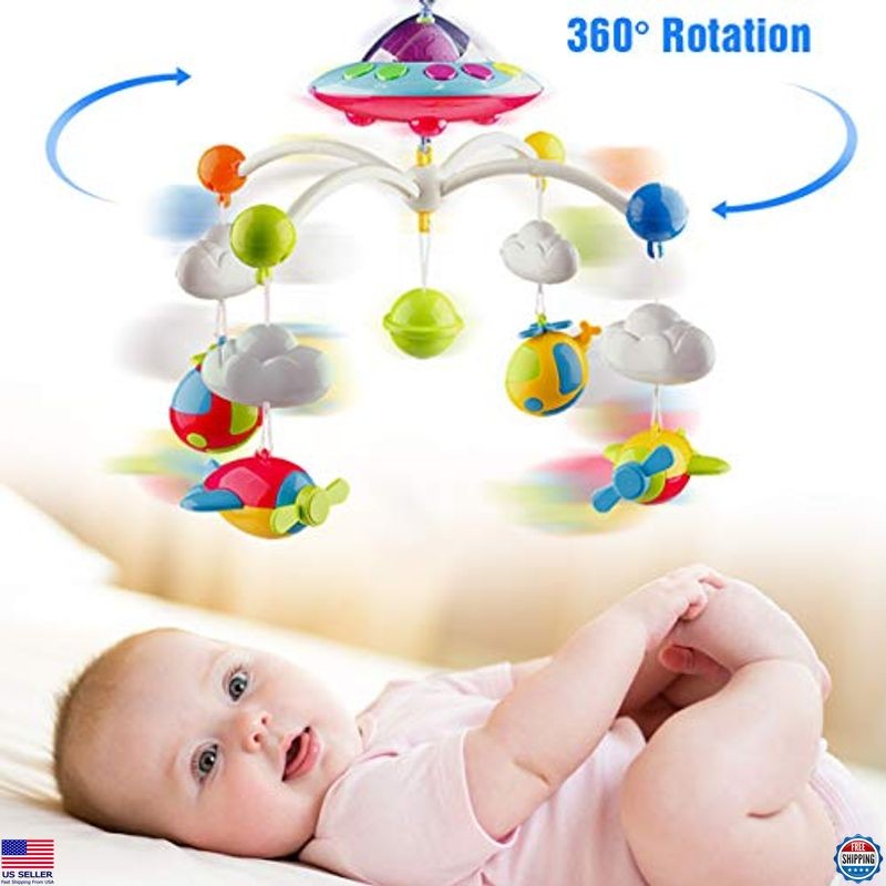 Musical Baby Crib Mobile Toy with Lights, Star Projector Remote Control