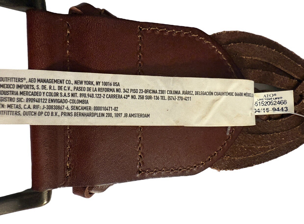 NEW American Eagle Outfitters Belt Womens Brown Wide Braided 2.75 Brass Buckle