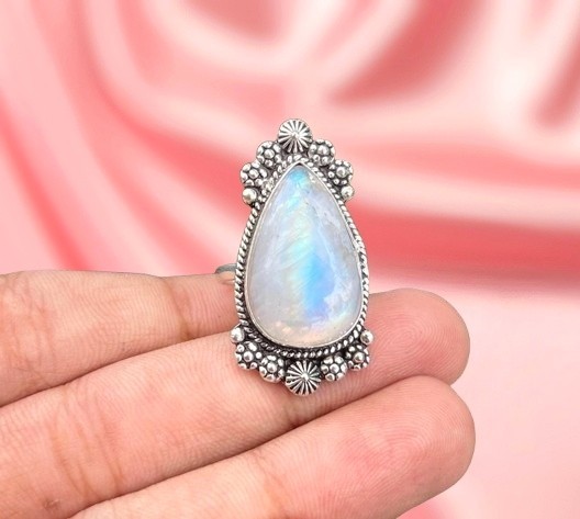 как выглядит Moonstone Rainbow Ring Silver Ring 925 Sterling Silver Ring Women