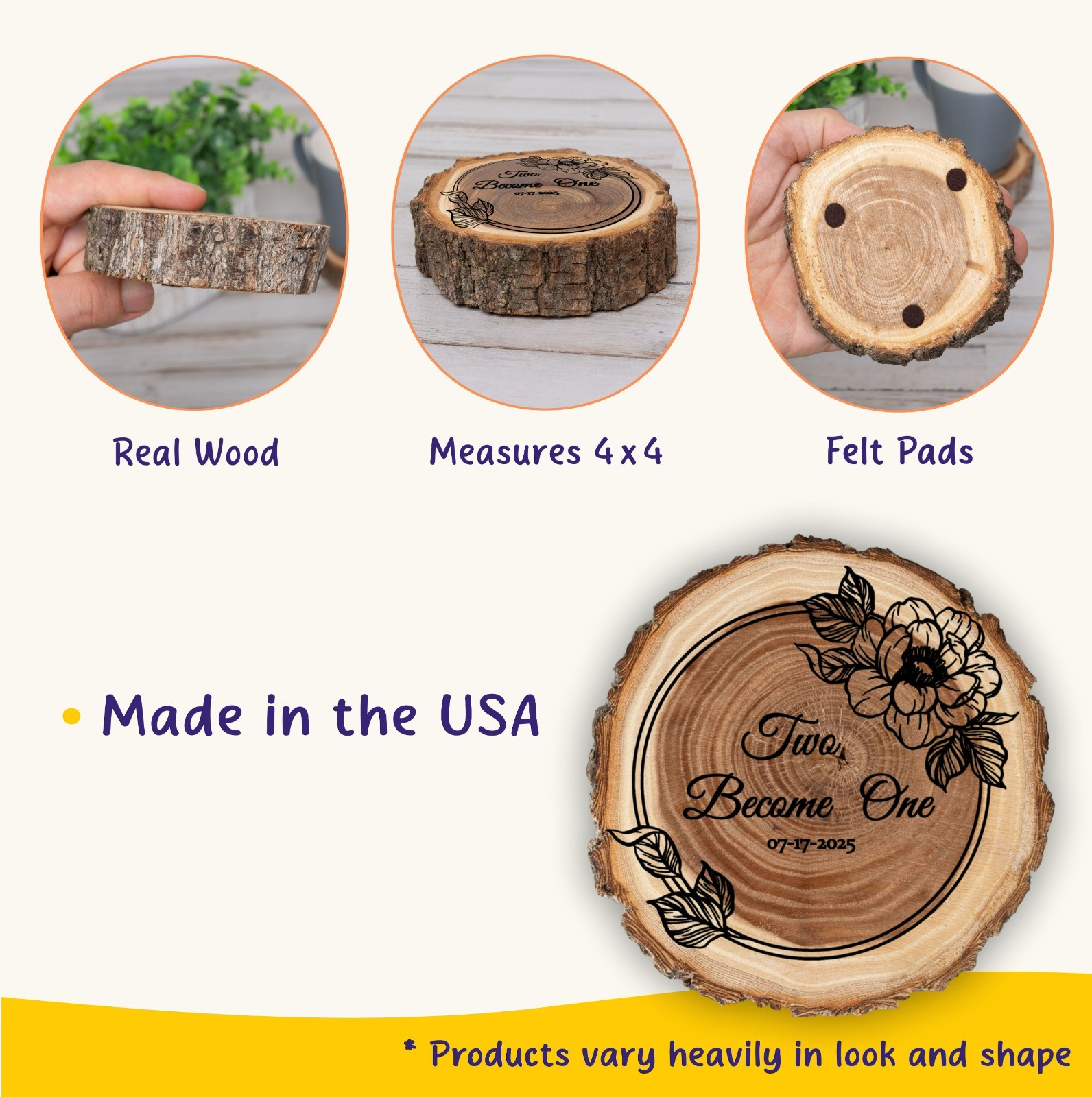 Wedding Coaster Set, Real Wood Coasters, Made in The USA, Wedding Guest Coasters