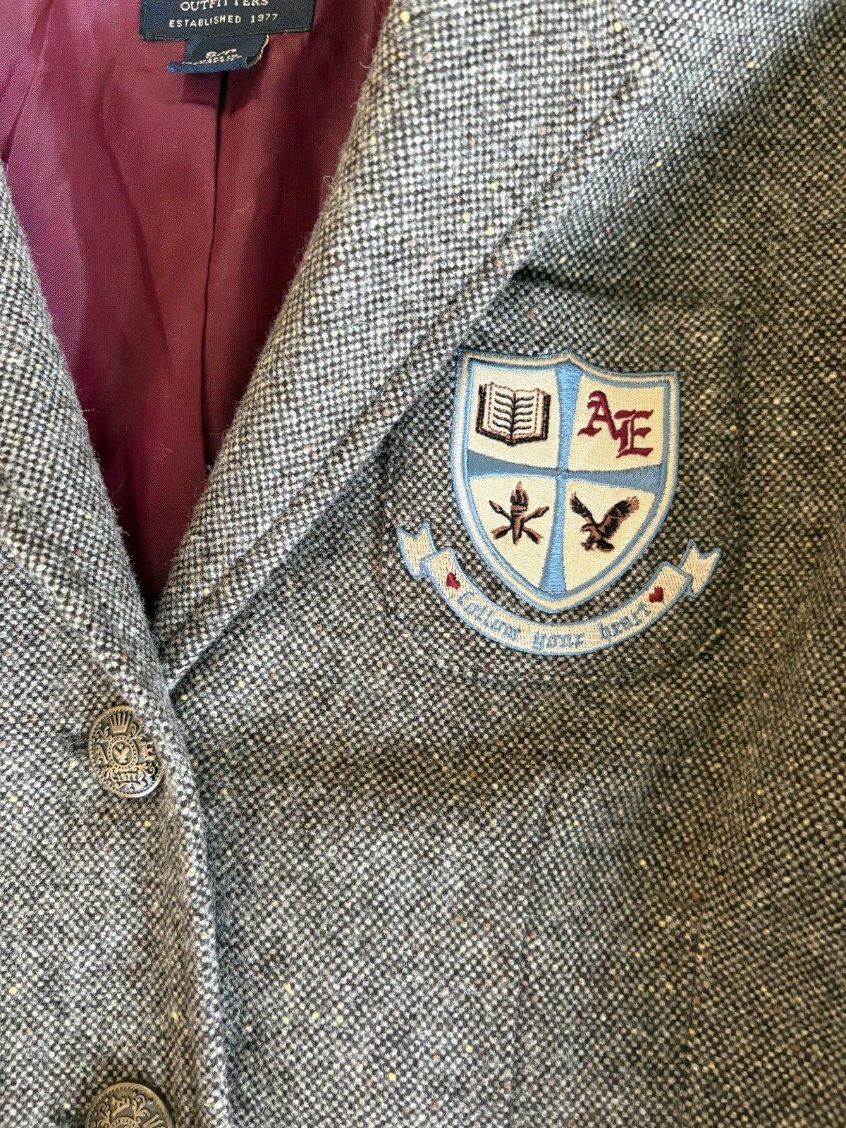 American Eagle Boys Blazer Sports Jacket Size Small S/P Crest Plaid Herringbone